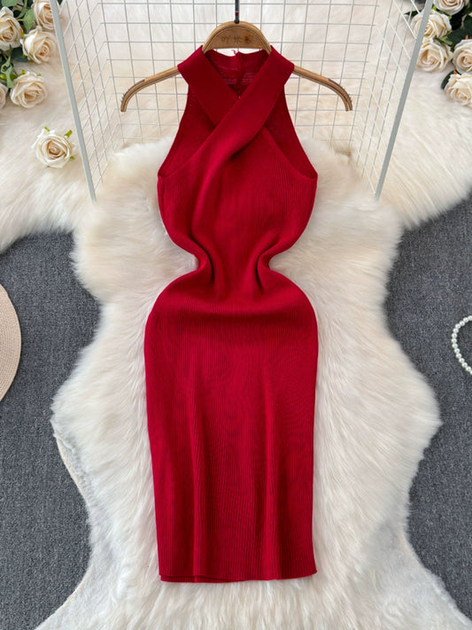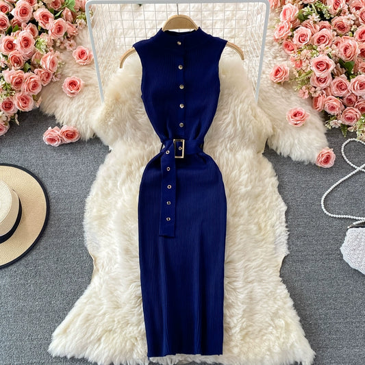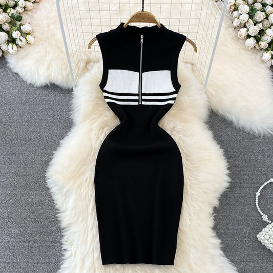 Sleeveless Slim Fit Knitted Dress with Hip-Length Bodycon Dress