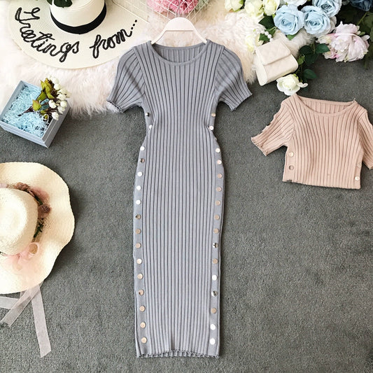 Women's Knitted Slim Fit Round Neck Short Sleeve Bodycon Dress