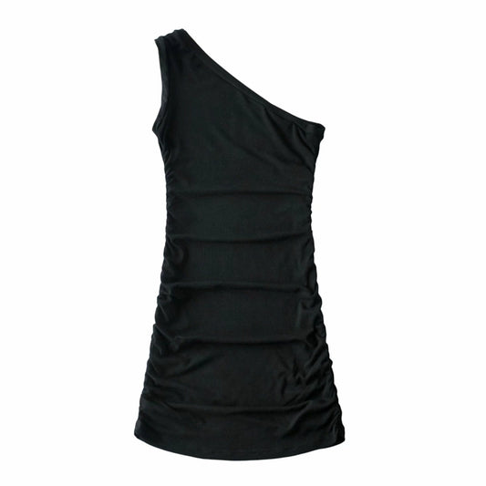 Simple One-Shoulder, Pleated Solid Colour Bodycon