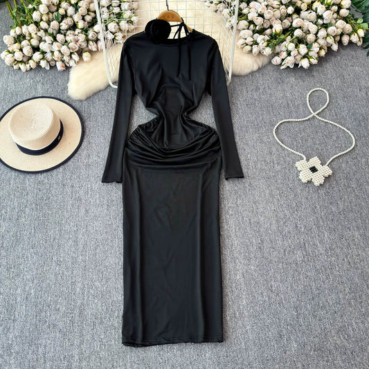 Women's Autumn Long-sleeved Halter Neck Knitted Dress