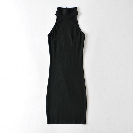 Simple Solid Colour Open Back, High Neck, and Slim Fit Dress