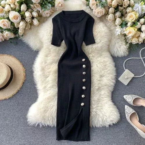 Sophisticated Summer Dress with Split Slim Fit and Celebrity Style