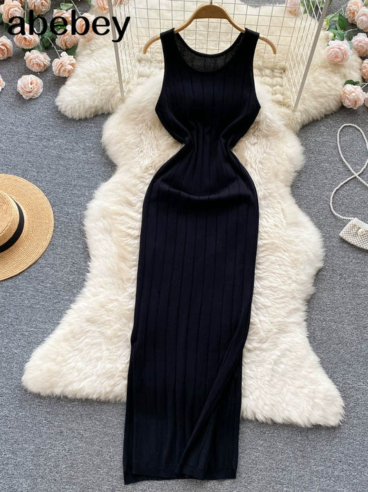 Summer Knit Sexy Strap Dress Women Tank Elastic Waist Bodycon