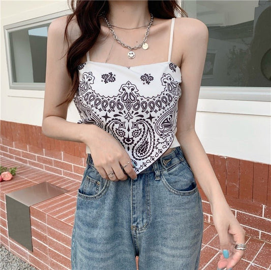 Summer Irregular Pattern Design Camisole Women's Outerwear Belly Pocket Top