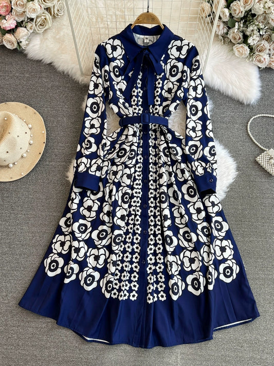 Elegant Retro Light Mature Style Shirt Dress with Cinched Waist and Long Sleeves