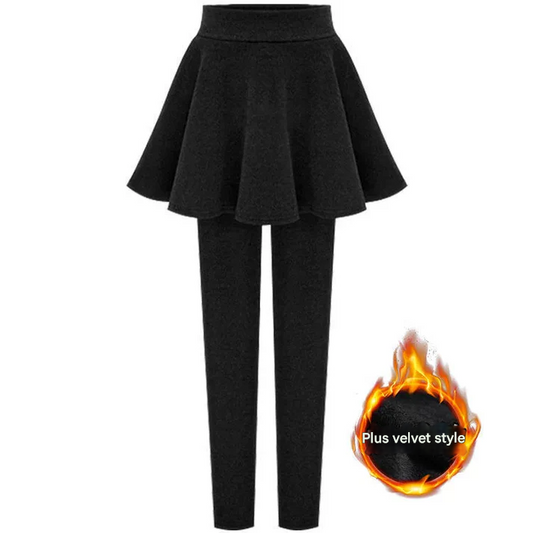 Winter Warmth Cotton and Fleece Leggings with Pleated Skirt Design
