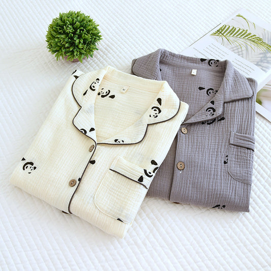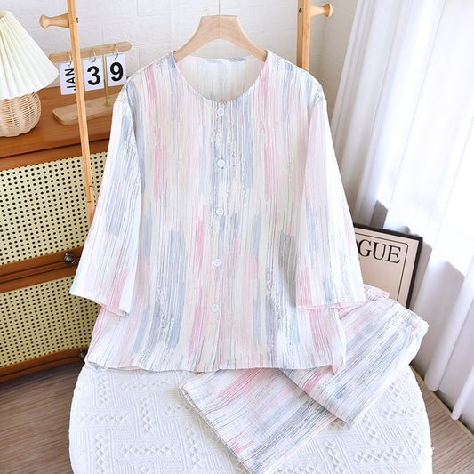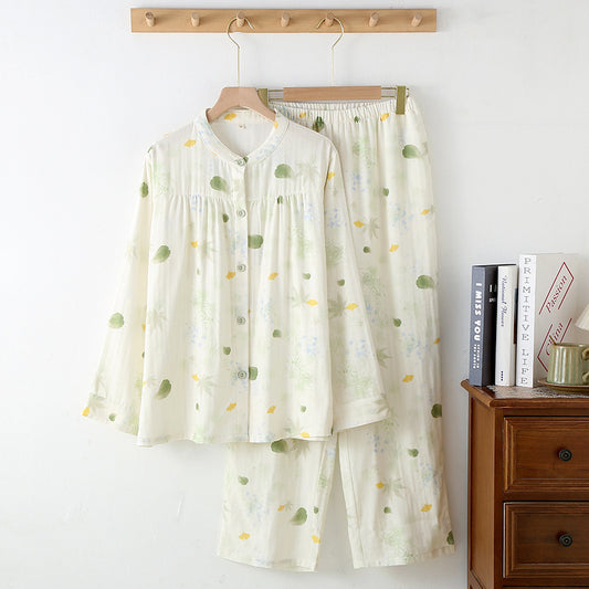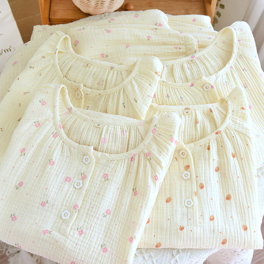 Classic Charming Thin Cotton Yarn Round Neck Double Gauze Loungewear For Spring, Autumn and Summer