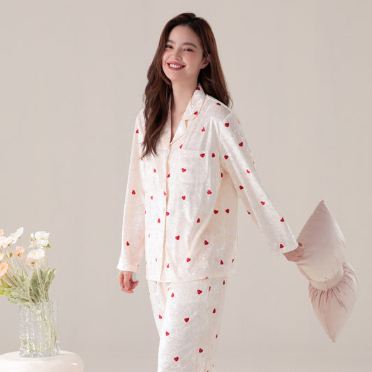Luxury Elegant Velvety Long Sleeve Diamond Velour Sleepwear Set for Autumn & Winter