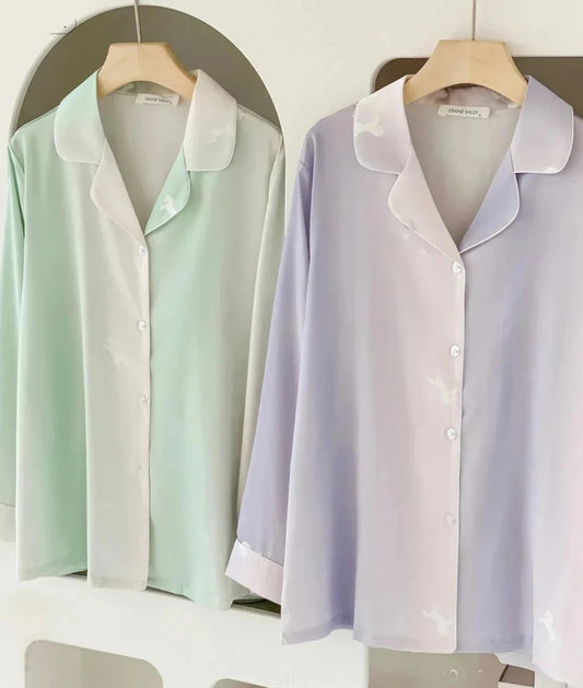 Stylish High-End Gradient Ice Silk Pajama Suit for Spring & Autumn
