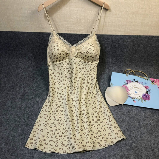 European and American New Erotic Sexy Women's Imitation Silk Lace Nightgown
