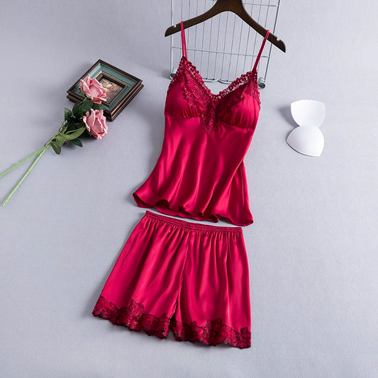Women's summer Ice silk suspender pajamas two-piece sexy loungewear