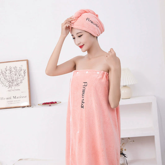 Women's Wrap Bandeau Bath Towel Non-Cotton Absorbs Water And Dries Quickly Large Thickened Bath Dress +Hair Dryer Cap+ Headband