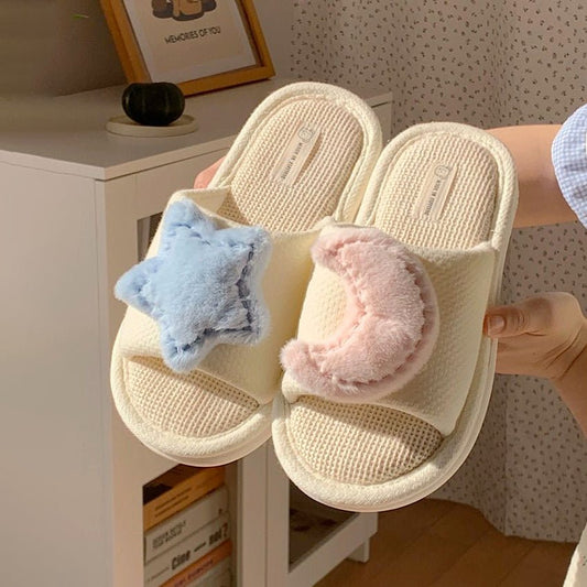 All Season Thin strip Star Moon Anti Slip Linen Women's f Slippers