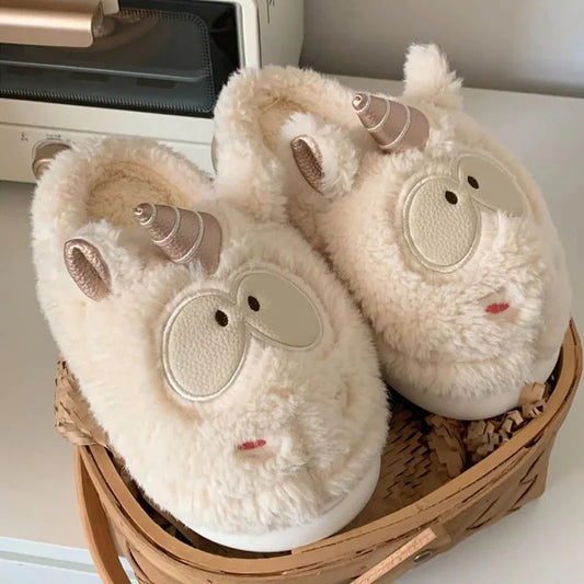 Unicorn Design Women Fluffy Fur Slippers with Thick Sole