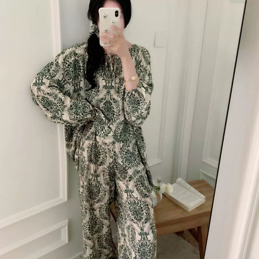Women's New Cotton Yarn Thin Printed Loungewear Suit For Spring And Autumn