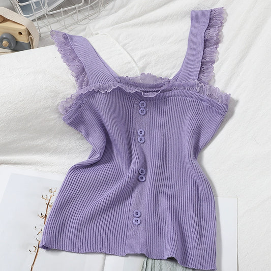 Elegant Sweet And Slim Suspenders Base knitted Lace Tops For Winter