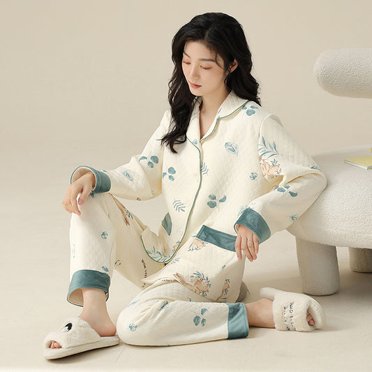 Cloud-Soft Comfort Cotton Thickened Padded Warm Lapel Pajamas for Cozy Winters