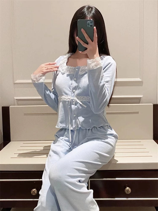 Cloud-Soft Comfort Plush Air Cotton Lapel Padded Loungewear Set for Autumn & Winter