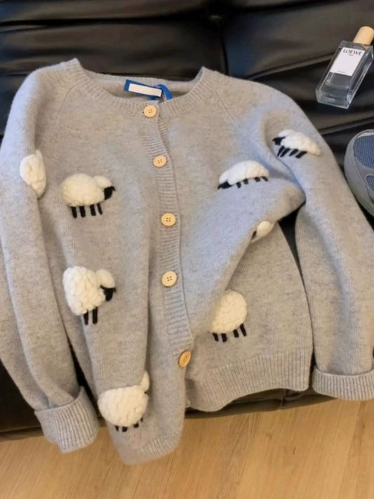 Women's Leopard Print V-neck knit Jacket High Waist Wide Leg Long Pants For Autumn