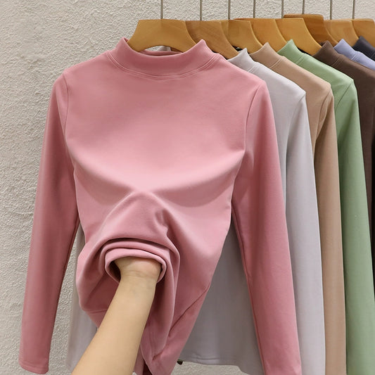 Reversible Velvet Thickened Semi-High Neck Base Long-Sleeved Shirt For Women's Autumn And Winter