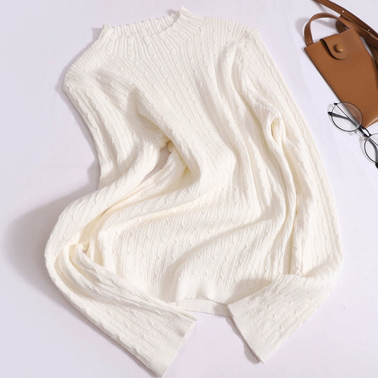 Versatile Solid Color Long-Sleeved knitted Base Slim And Thin Half-High Neck Twist Top