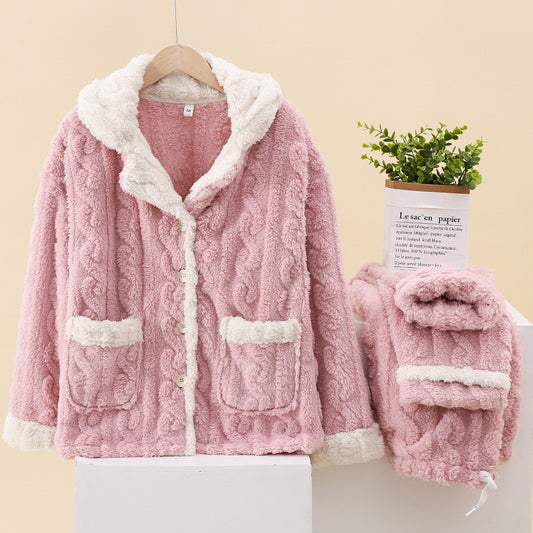 Winter Wonders Cozy Flannel Cardigan Warmth Coral Velvety Loungewear for Postpartum Comfort