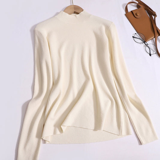 New Korean Version Versatile Knitted Half-High Neck Solid Color Long Sleeve Inner Top