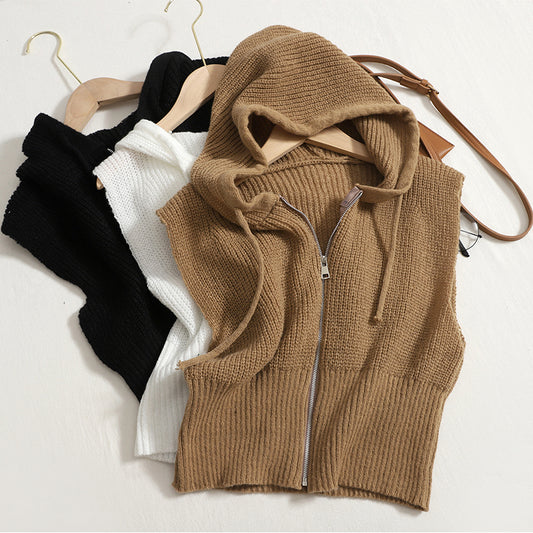 Korean version Zipper Hooded Sleeveless Vest knitwear Short Small Cardigan Top For Autumn And Winter
