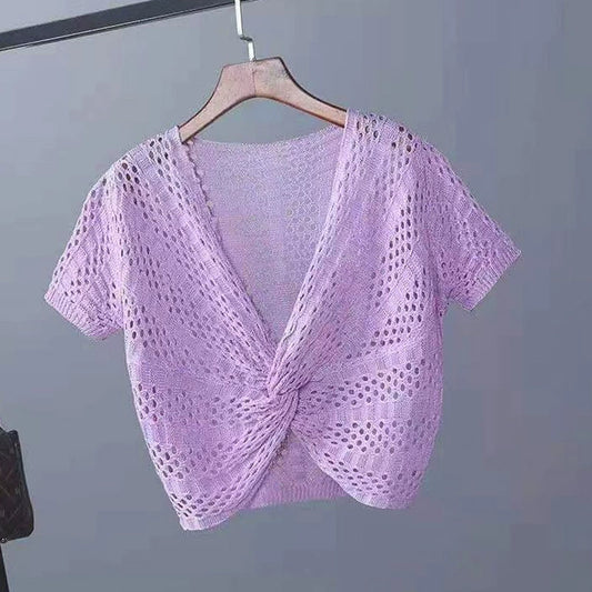 With a sundress cut-out blouse, a new summer ice silk mesh tops