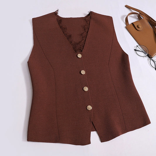 French Temperament V-Neck Lace Vest Slim Thin Shouldered Sleeveless Top For Summer