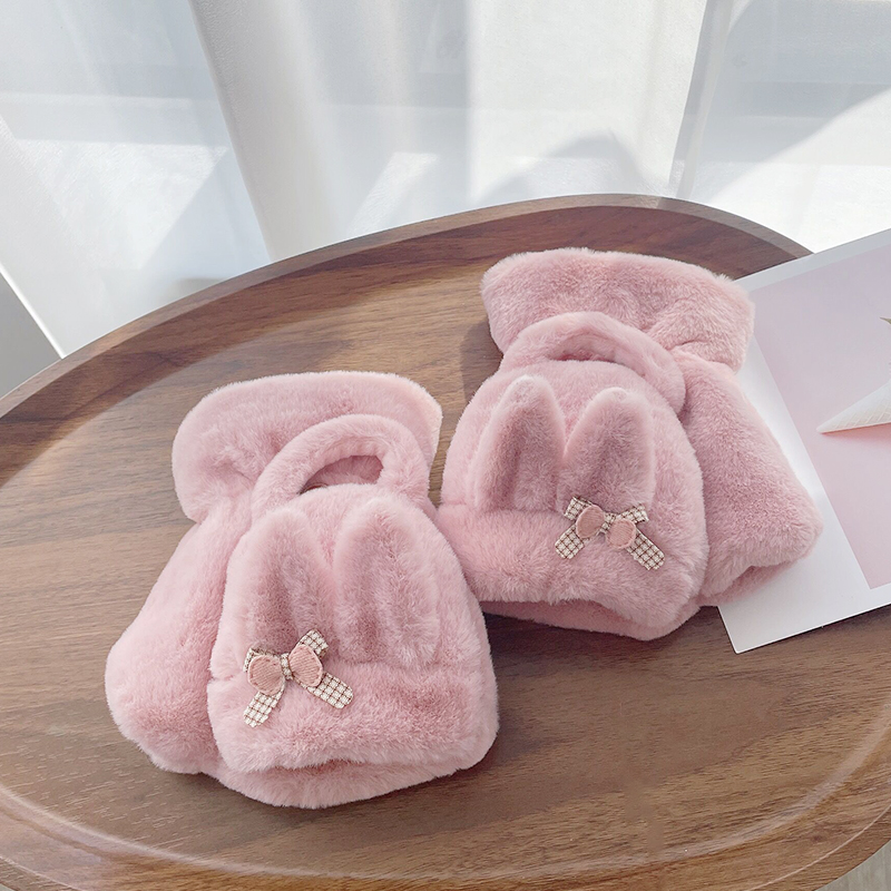 Autumn and Winter Double-Layer Plush Half-Finger Velvet Thickened Gloves