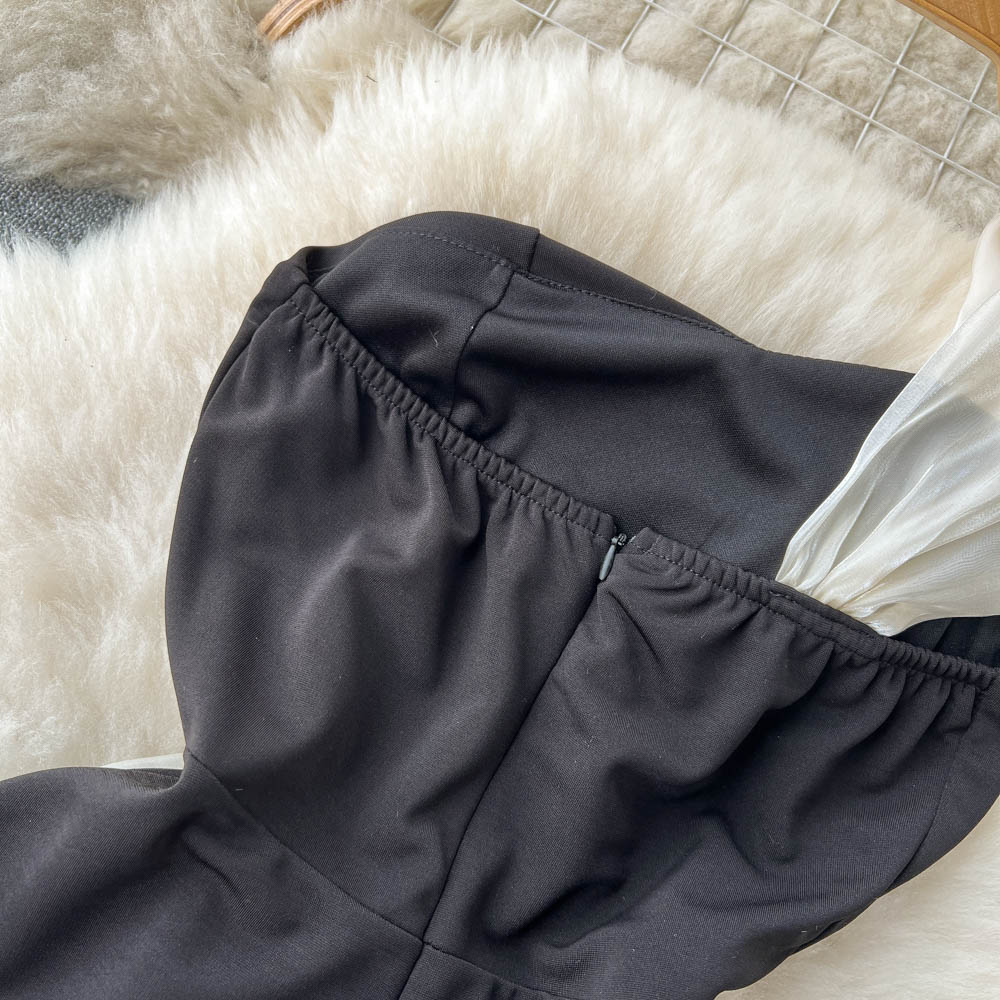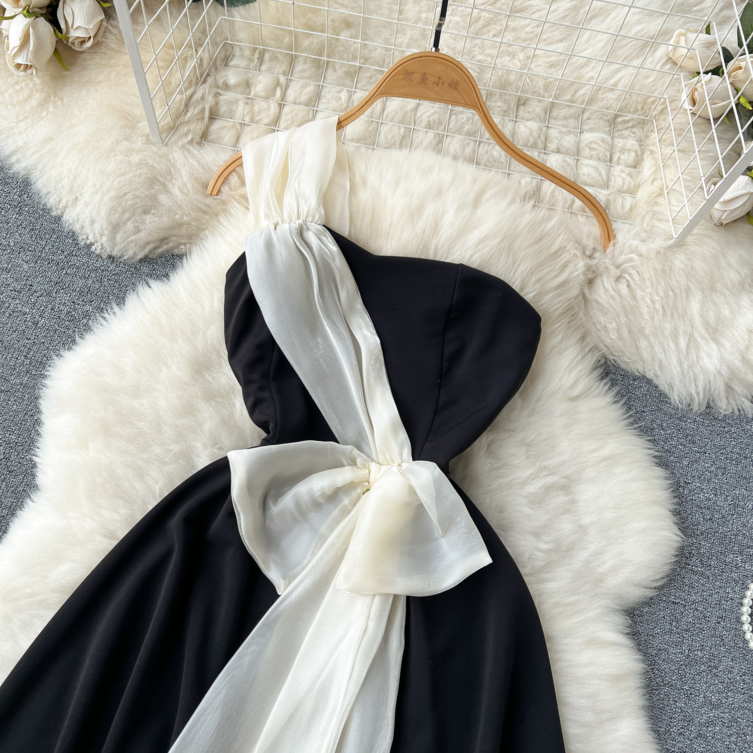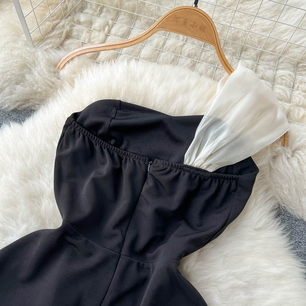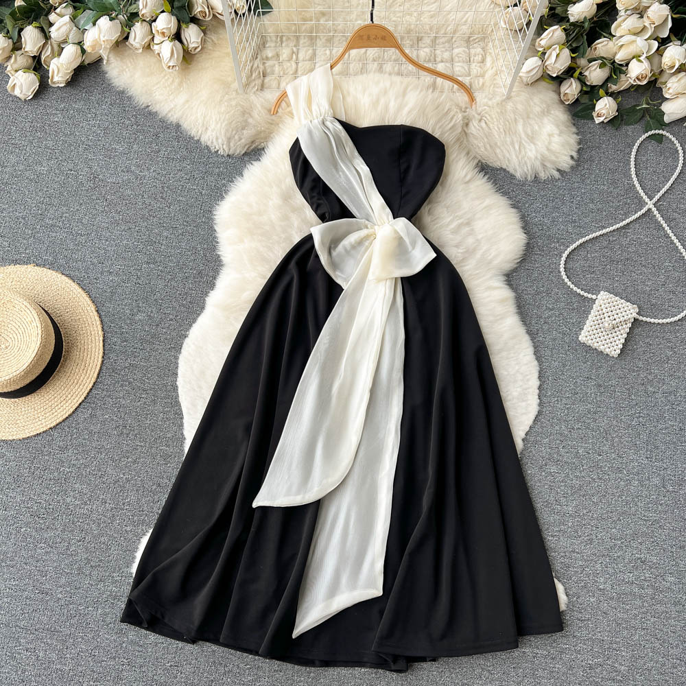 Black and White Summer Beauty Slanted One Shoulder A-Line Skirt Dress