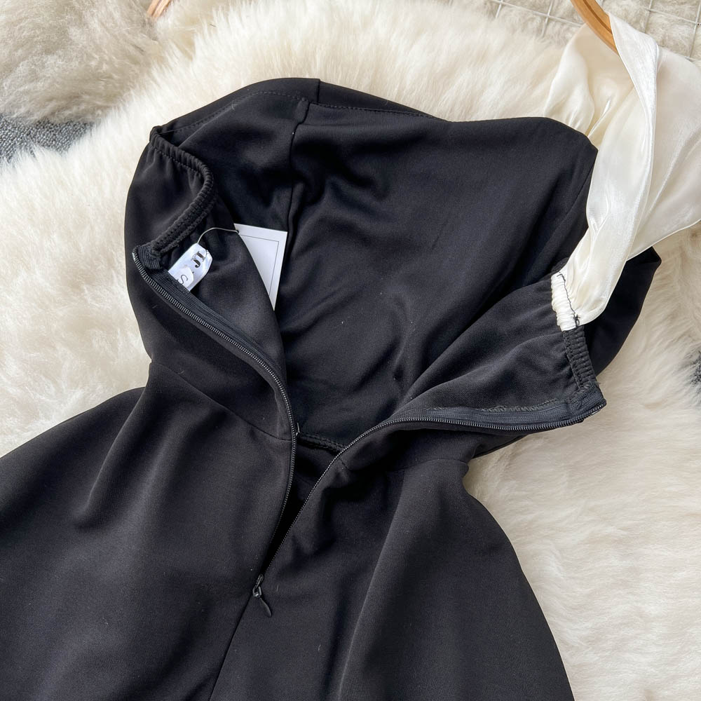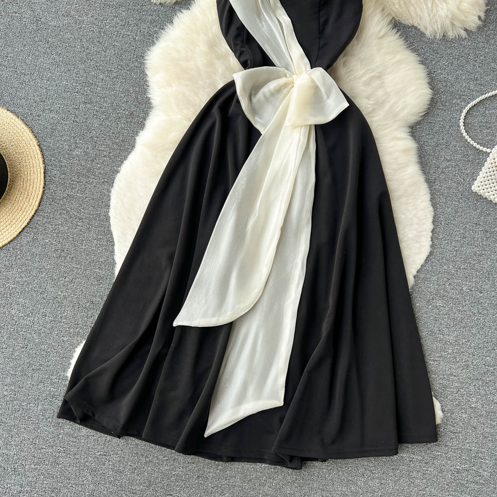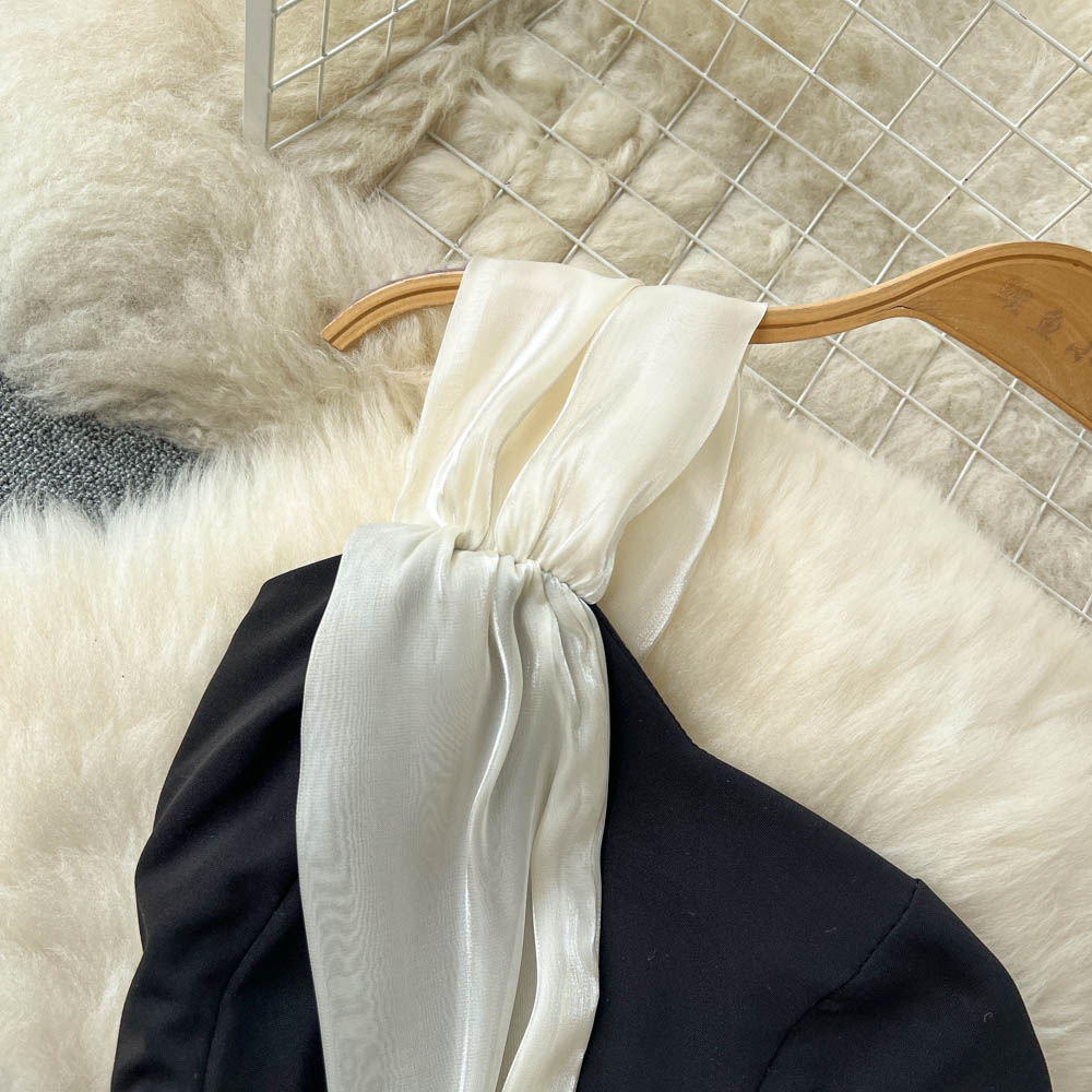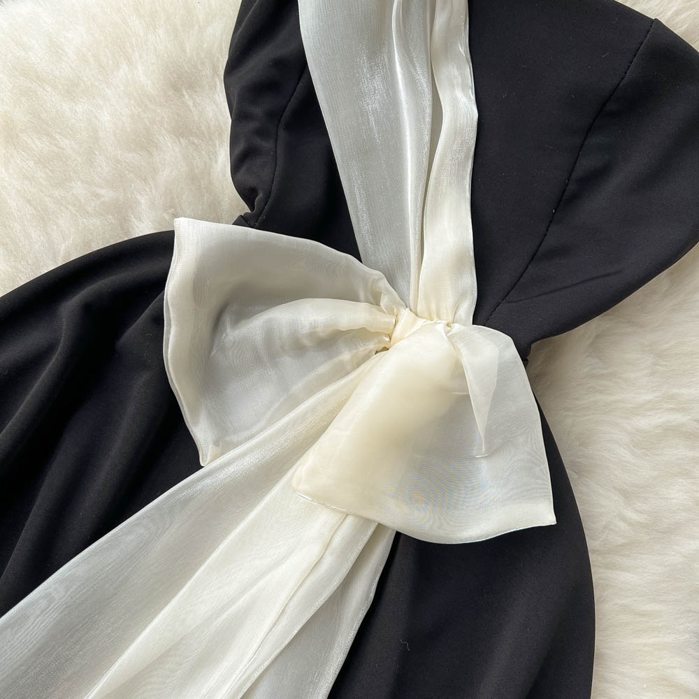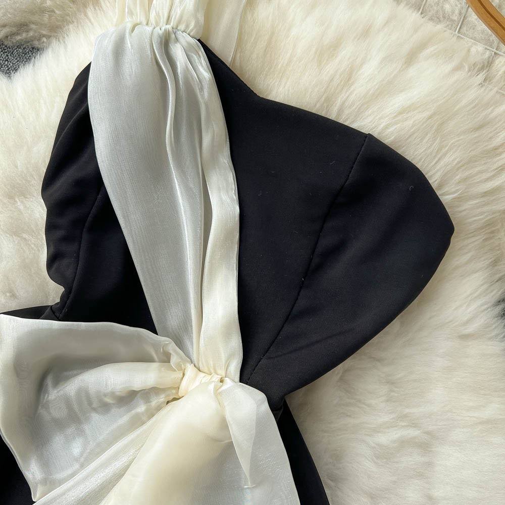 Black and White Summer Beauty Slanted One Shoulder A-Line Skirt Dress