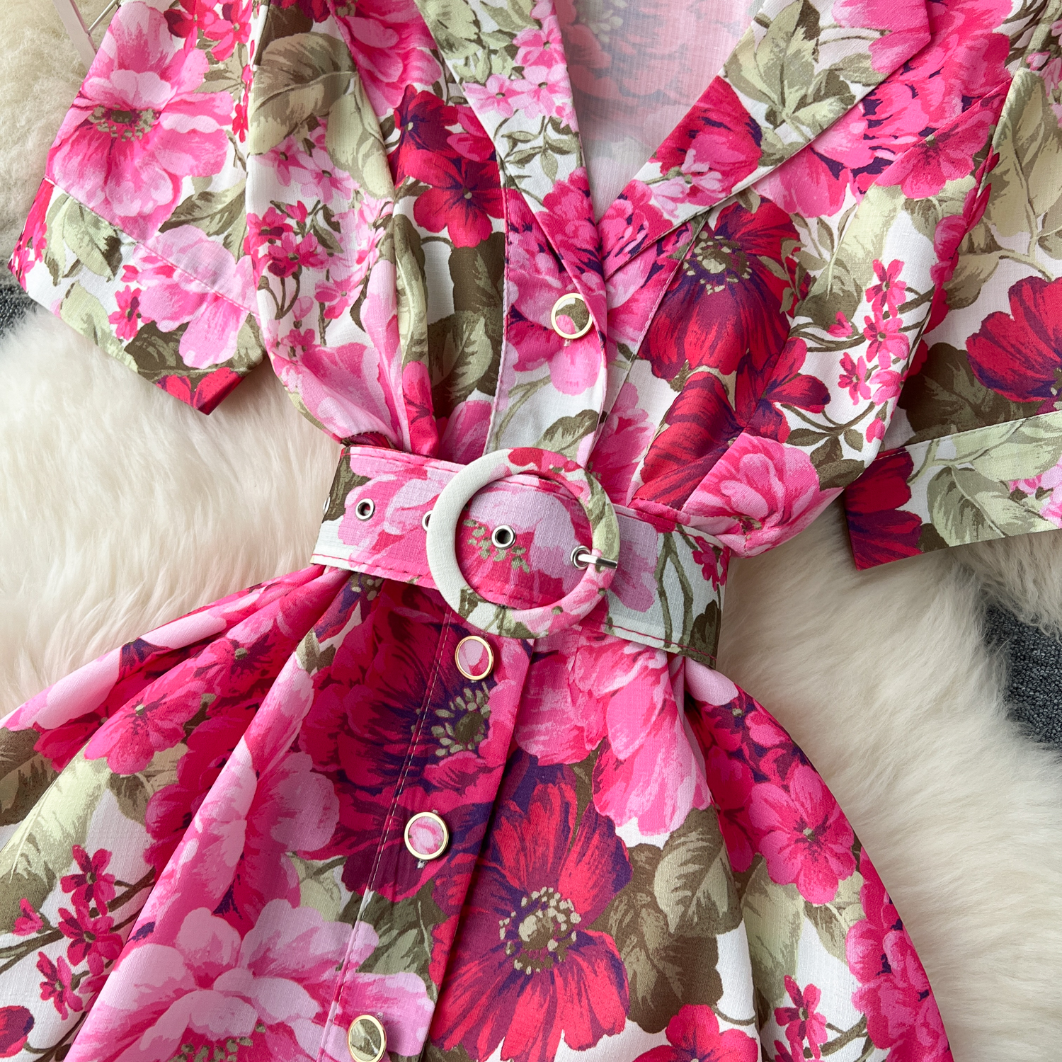Blossom Bliss Inspired High-End Suit Collar Dress with Slim Silhouette