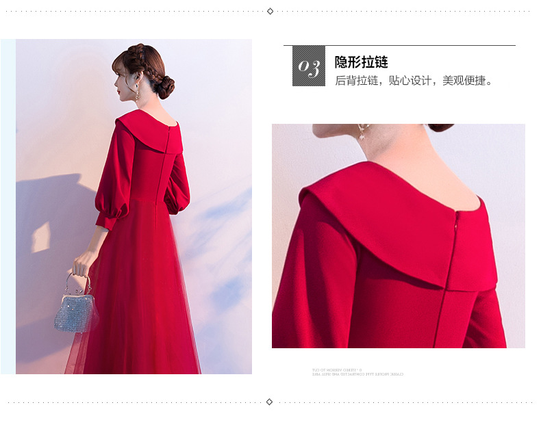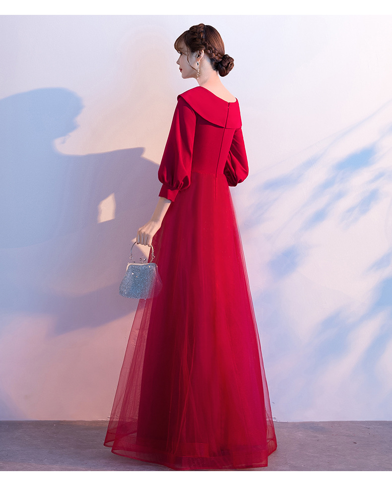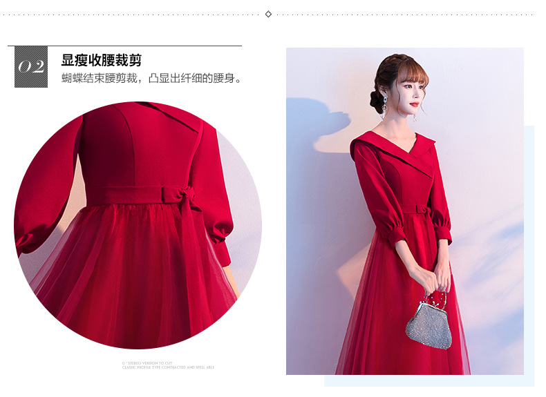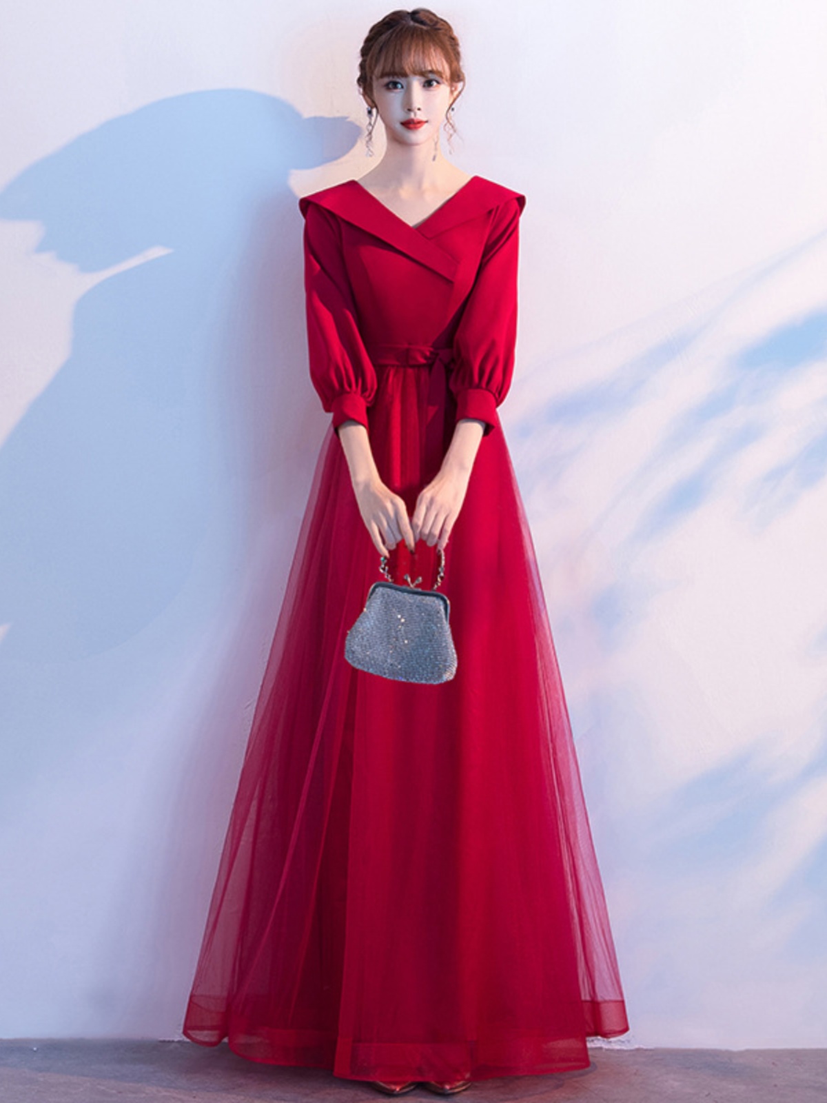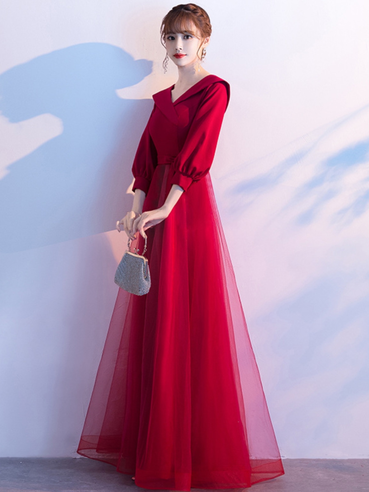 Bridal Glam Long-Sleeved Dress with V-Neck and Puffy Patchwork Skirt