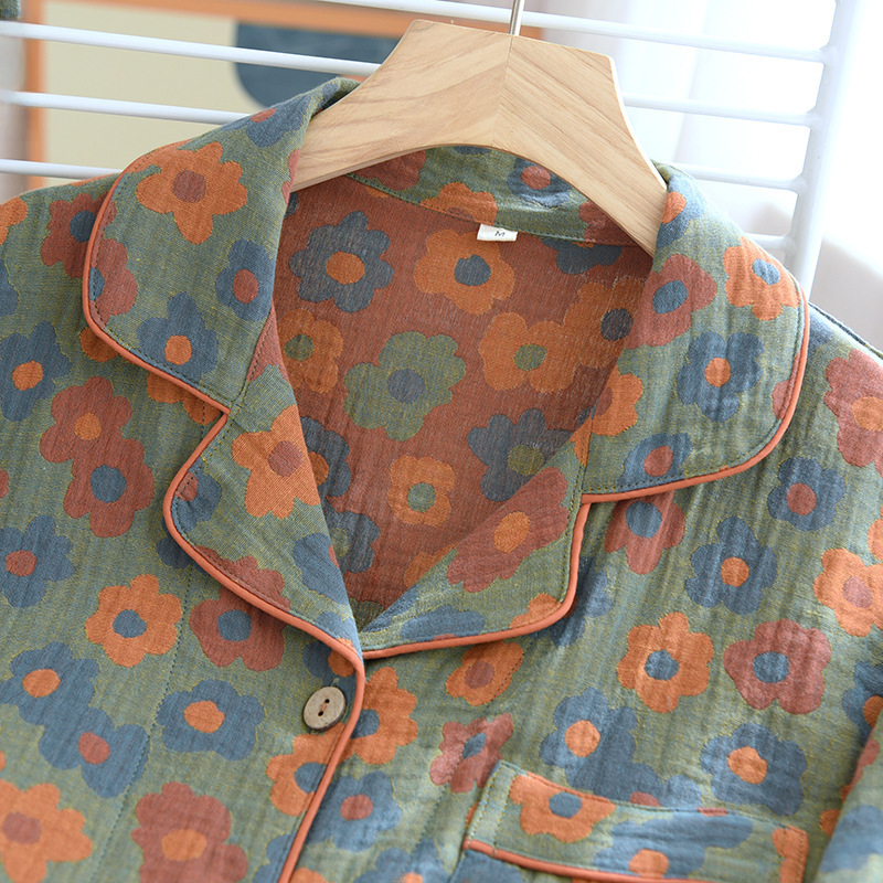 Comfy Retro Floral Print Yarn-Dyed Pure Cotton Gauze for Spring & Autumn Loungewear