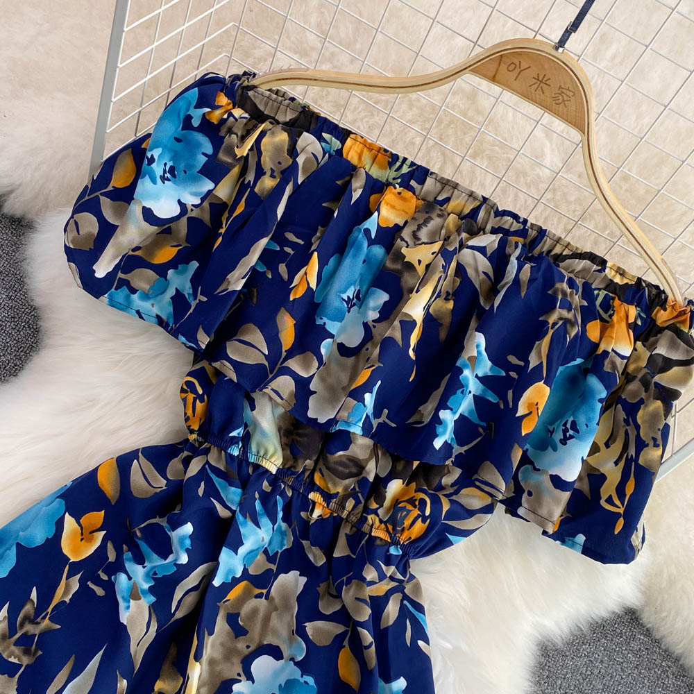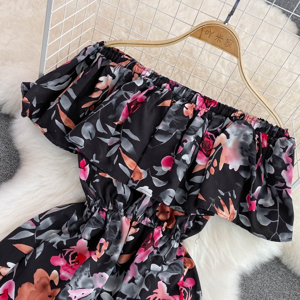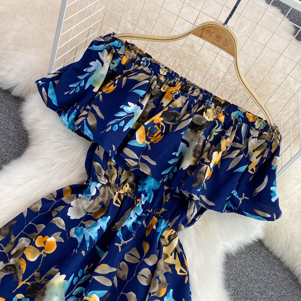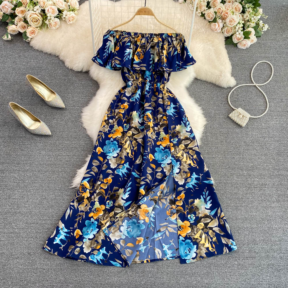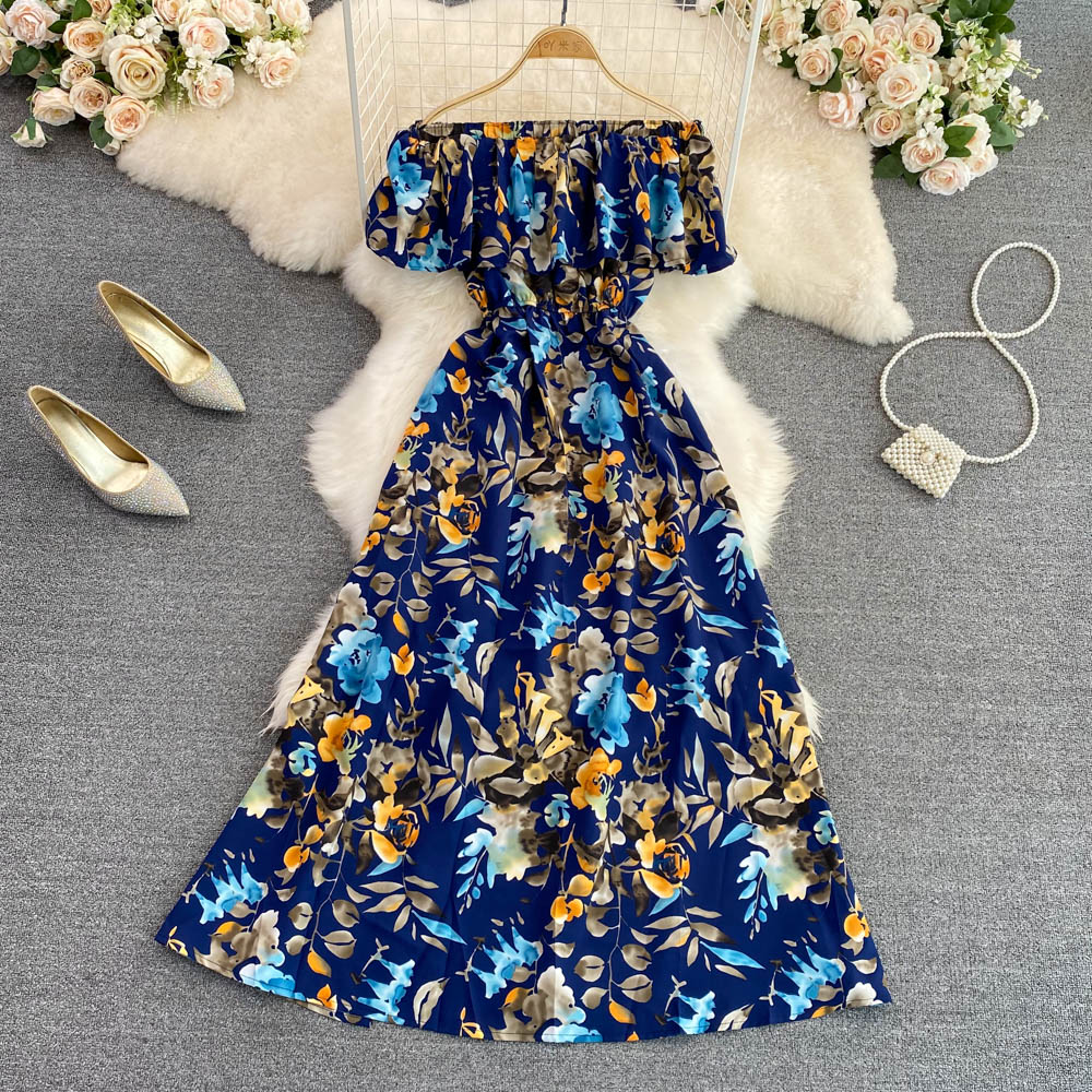 Elegant A-Line Dress with Off-The-Shoulder Ruffles and High-Waisted Silhouette