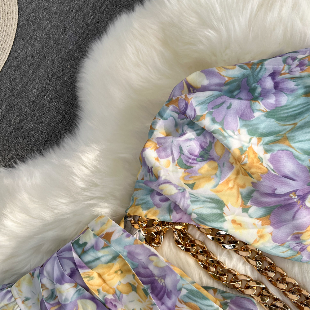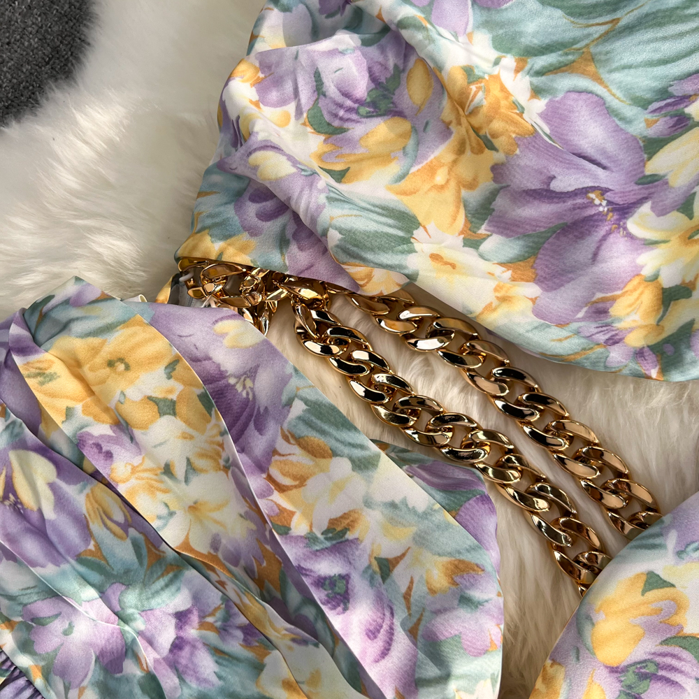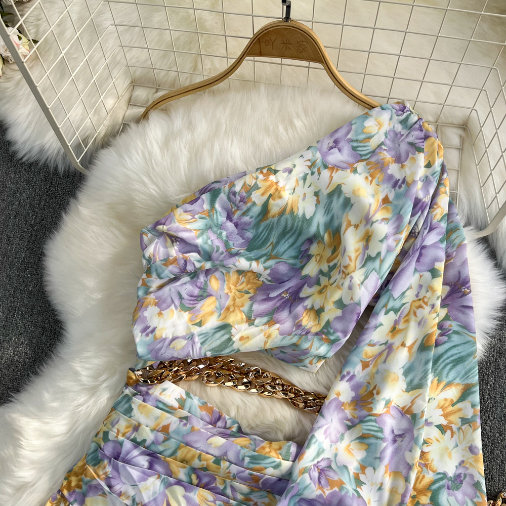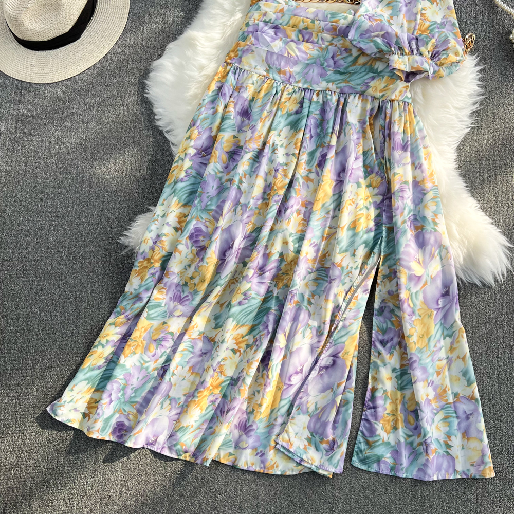 Elegant Floral Slanted Neck Off-the-Shoulder Two-Piece for Seaside Vacations