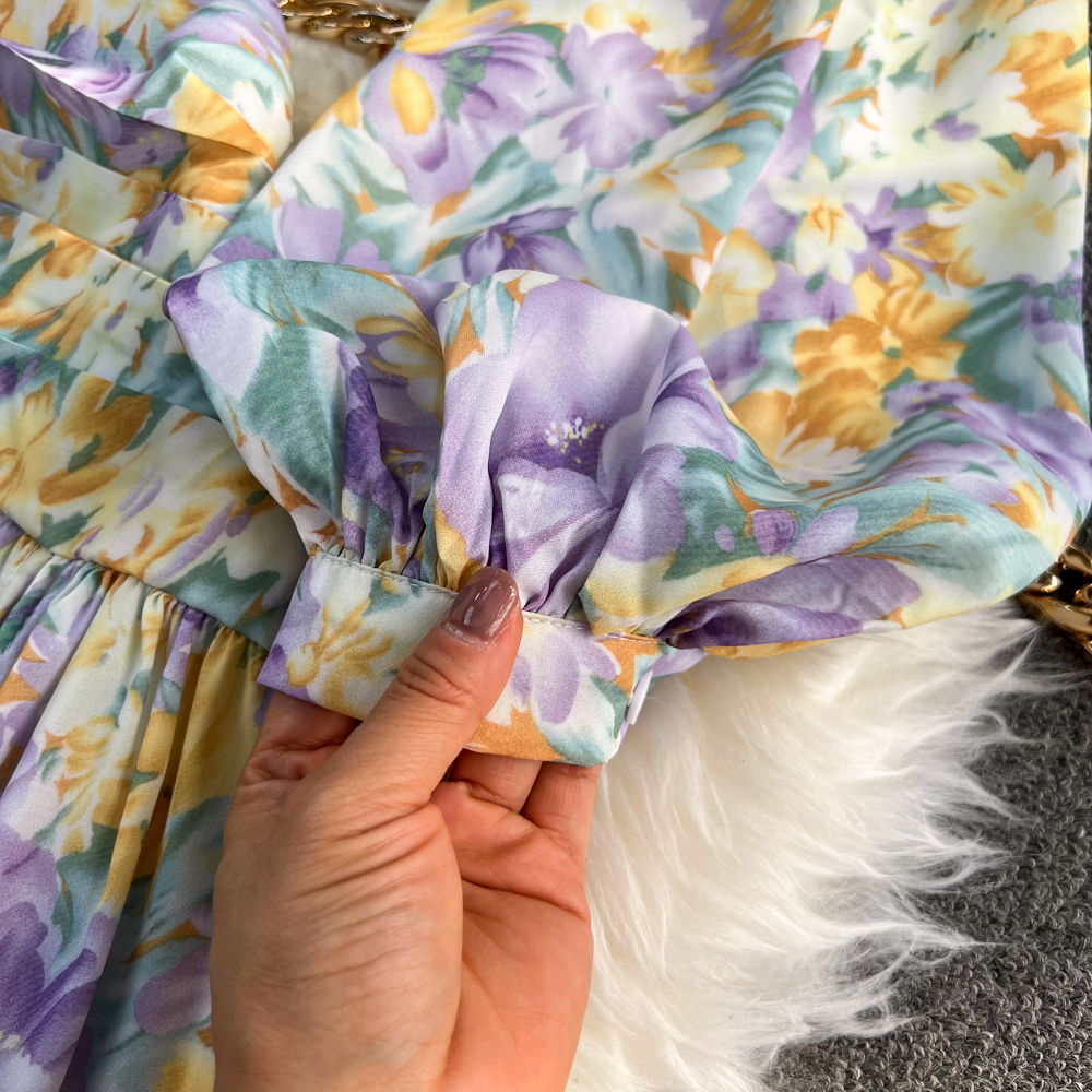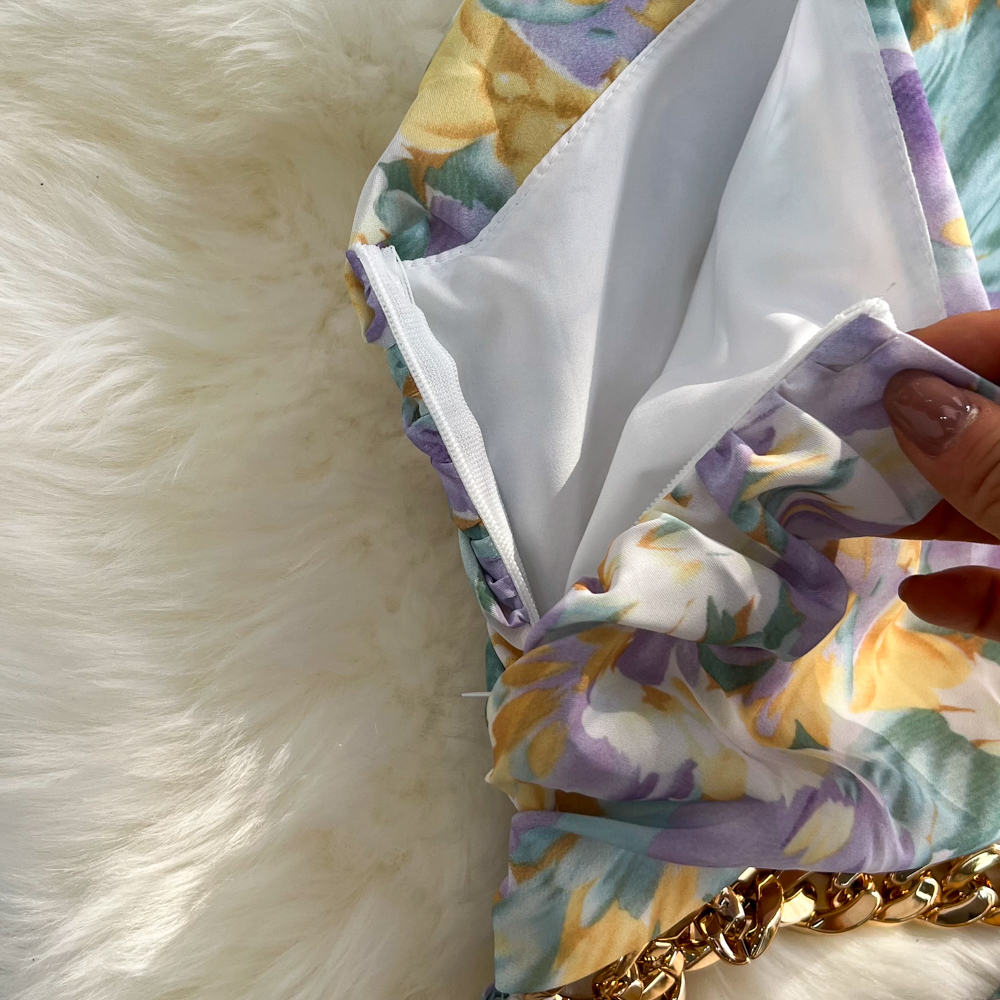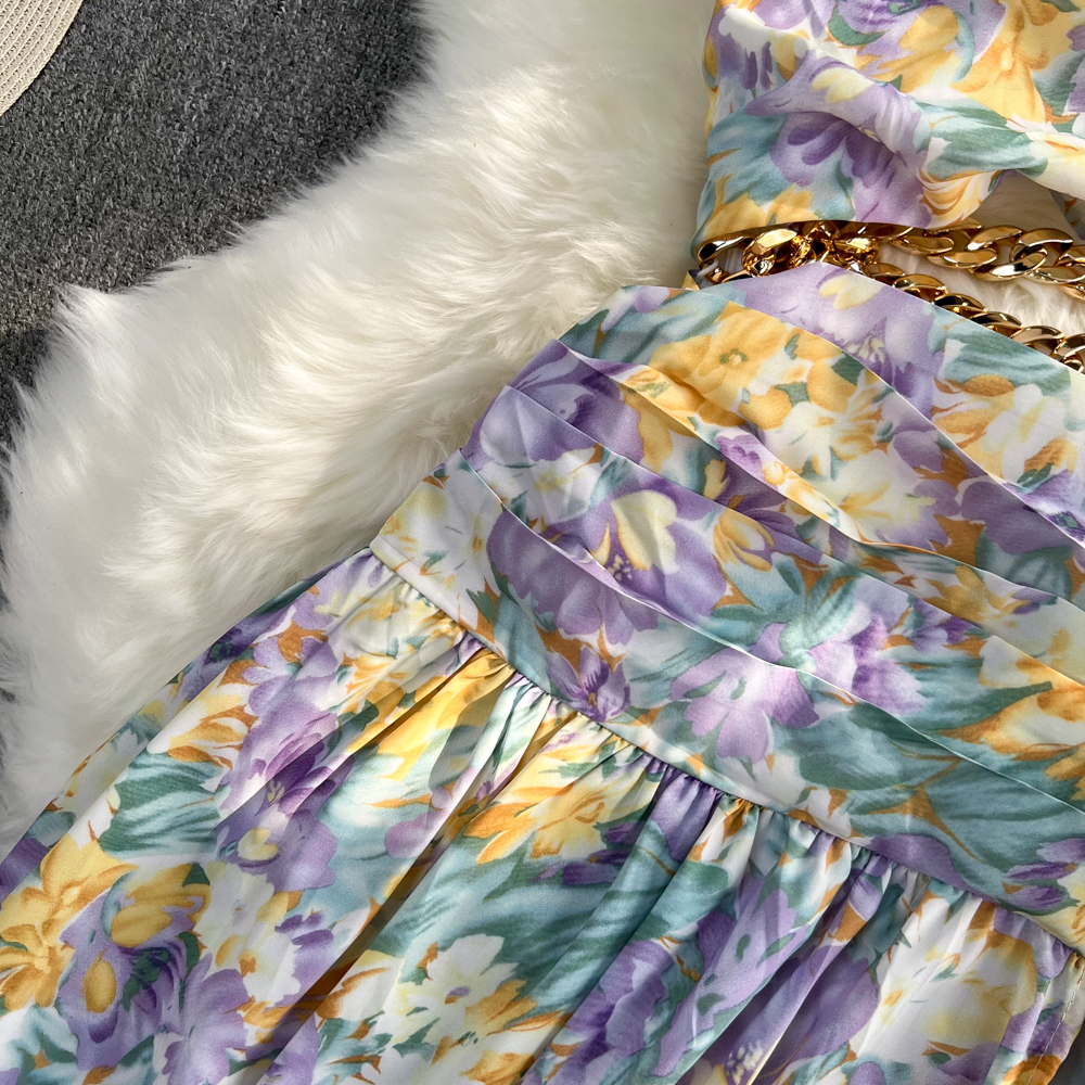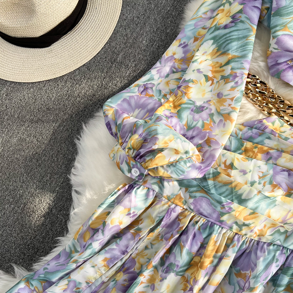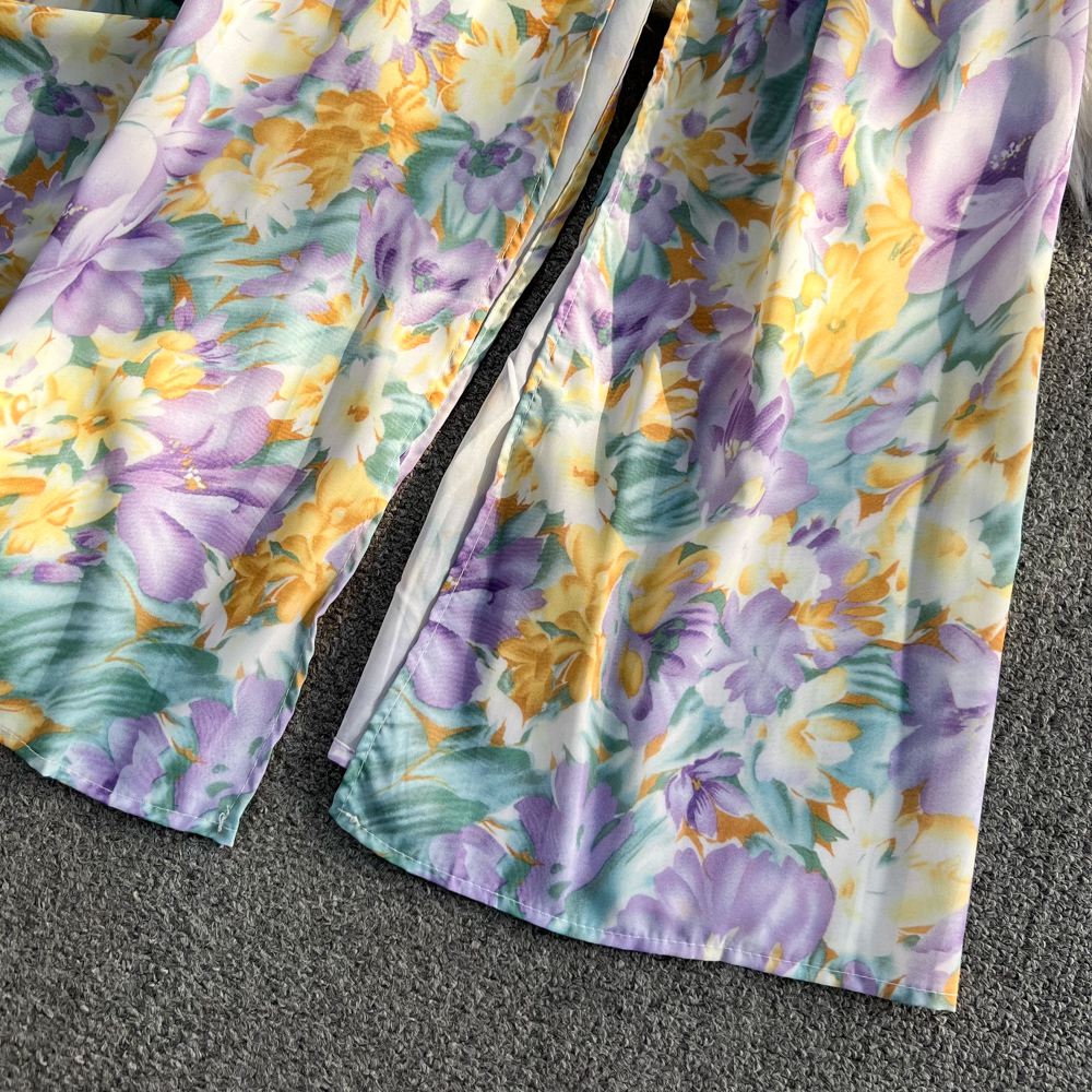 Elegant Floral Slanted Neck Off-the-Shoulder Two-Piece for Seaside Vacations