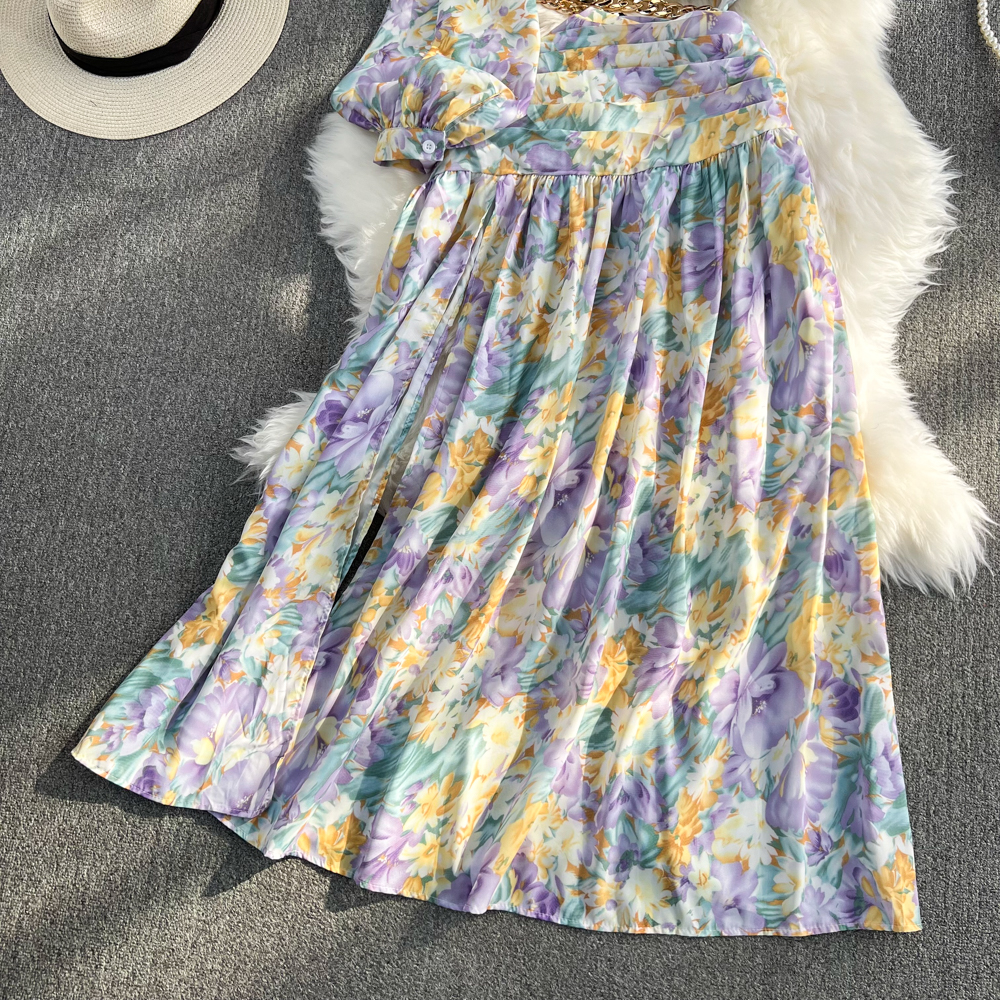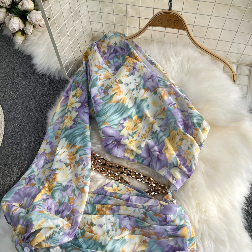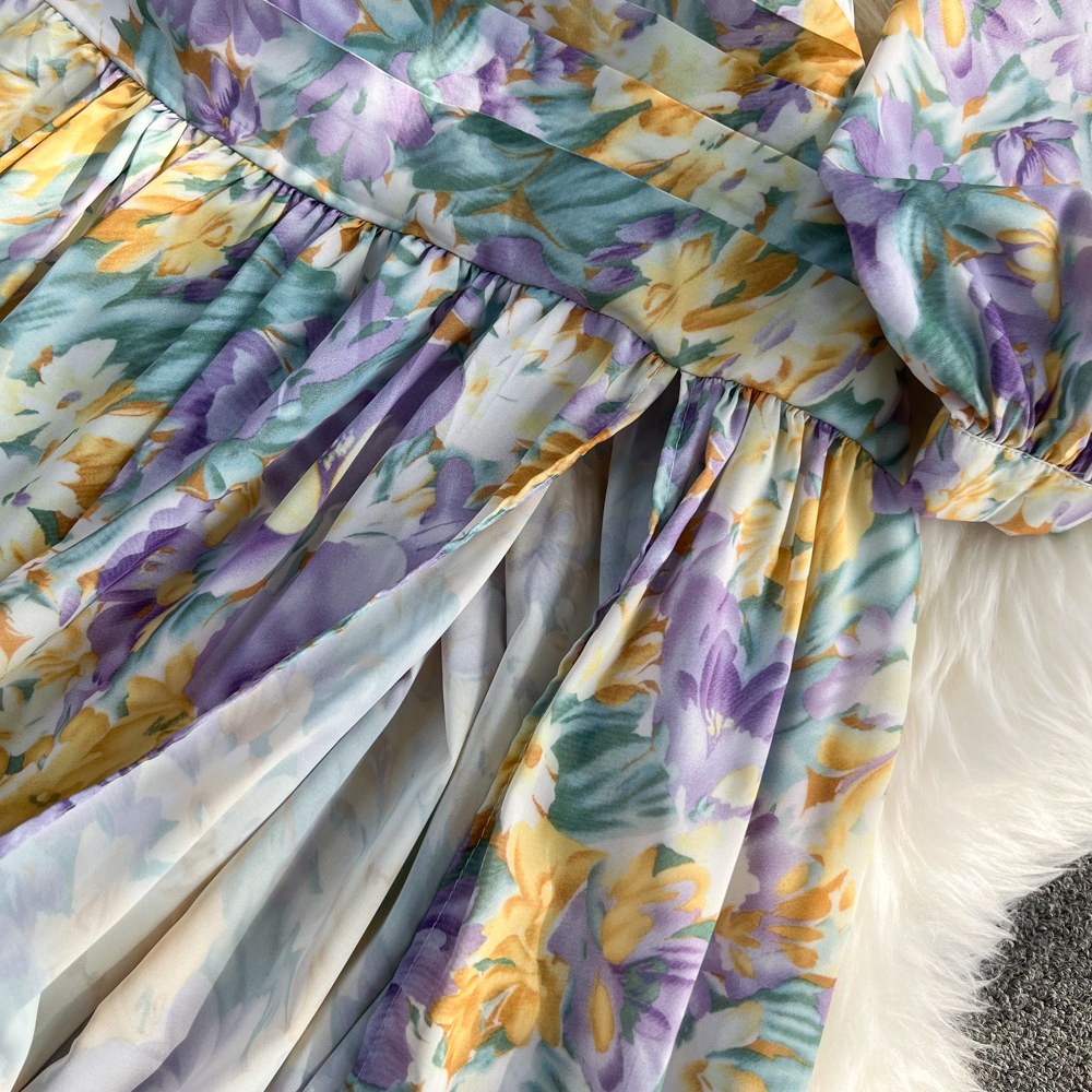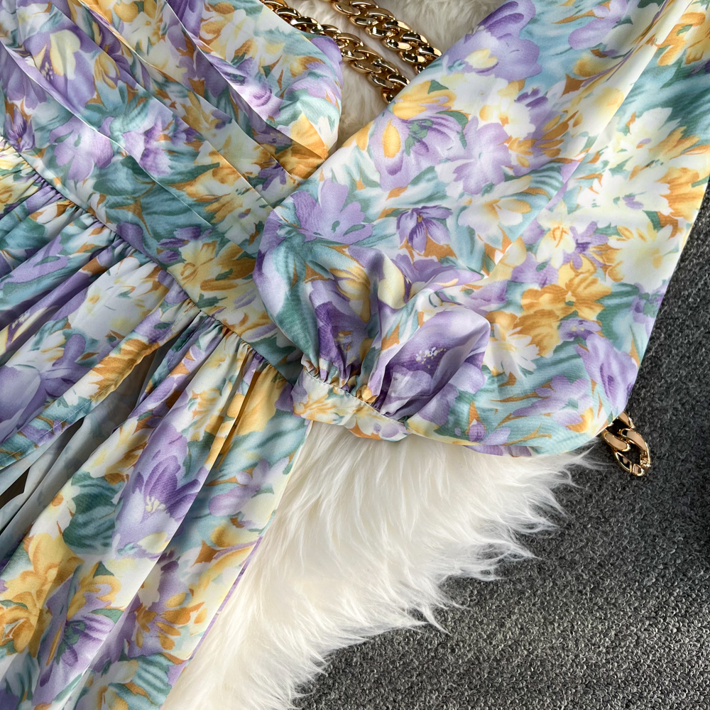 Elegant Floral Slanted Neck Off-the-Shoulder Two-Piece for Seaside Vacations