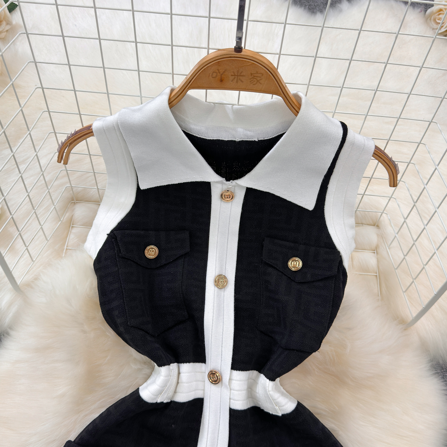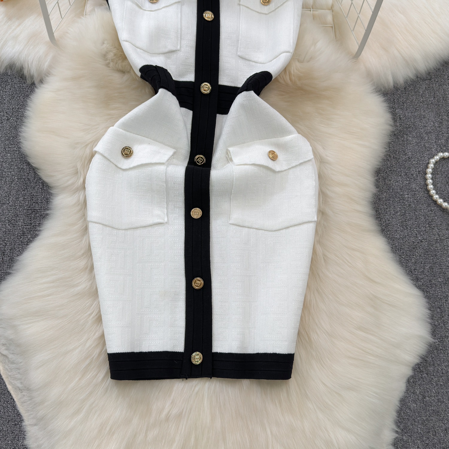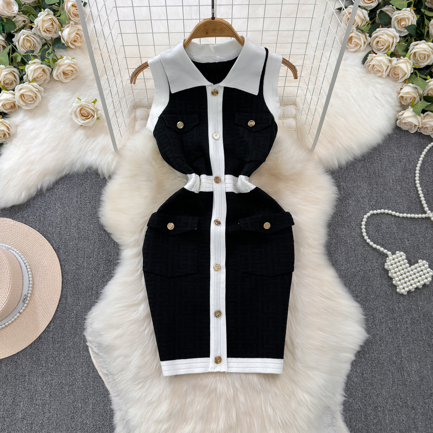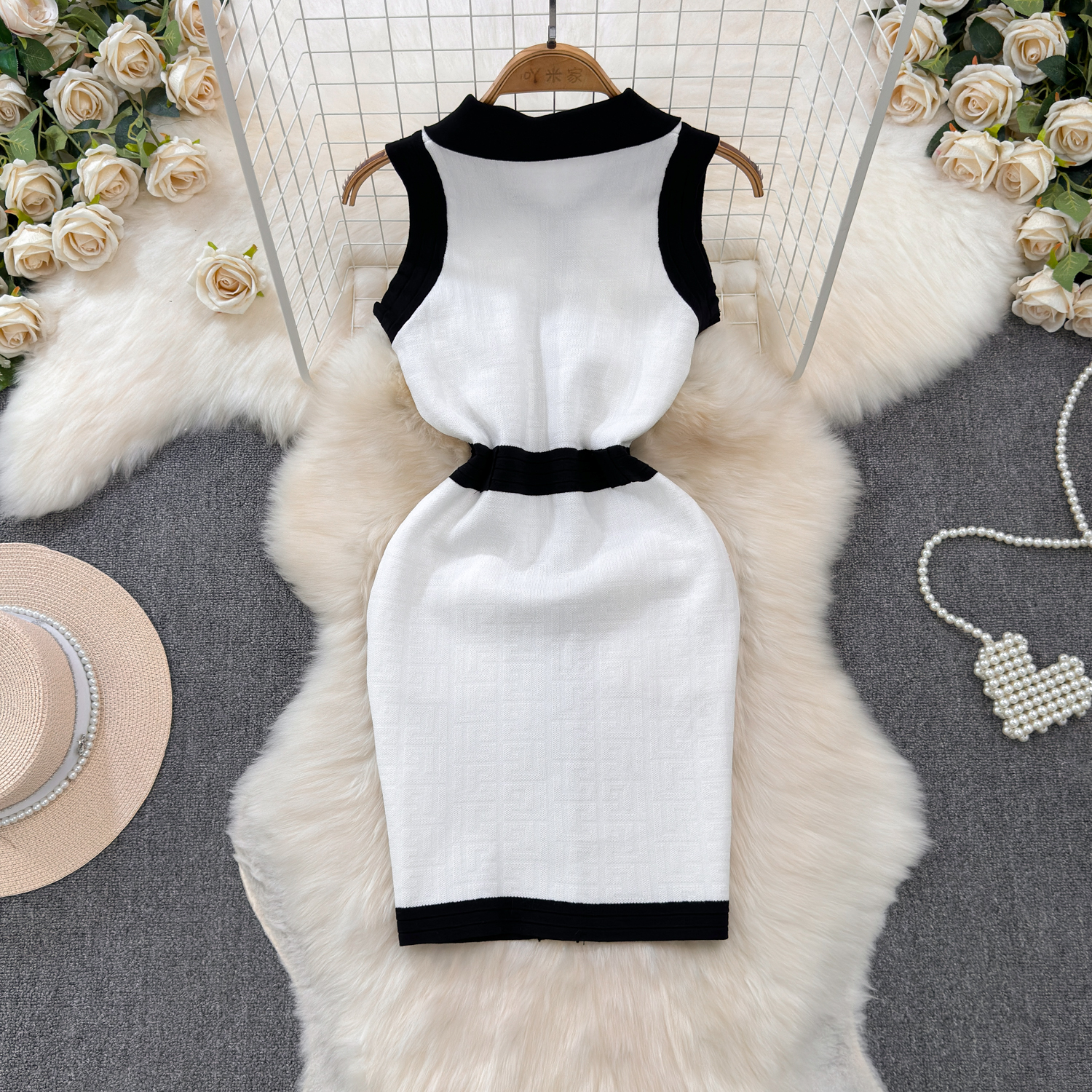 Elegant French-Inspired Knitted Vest Bodycon Dress