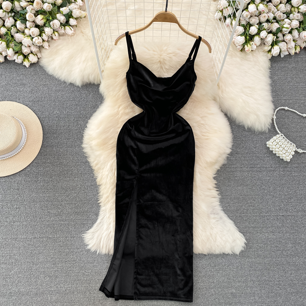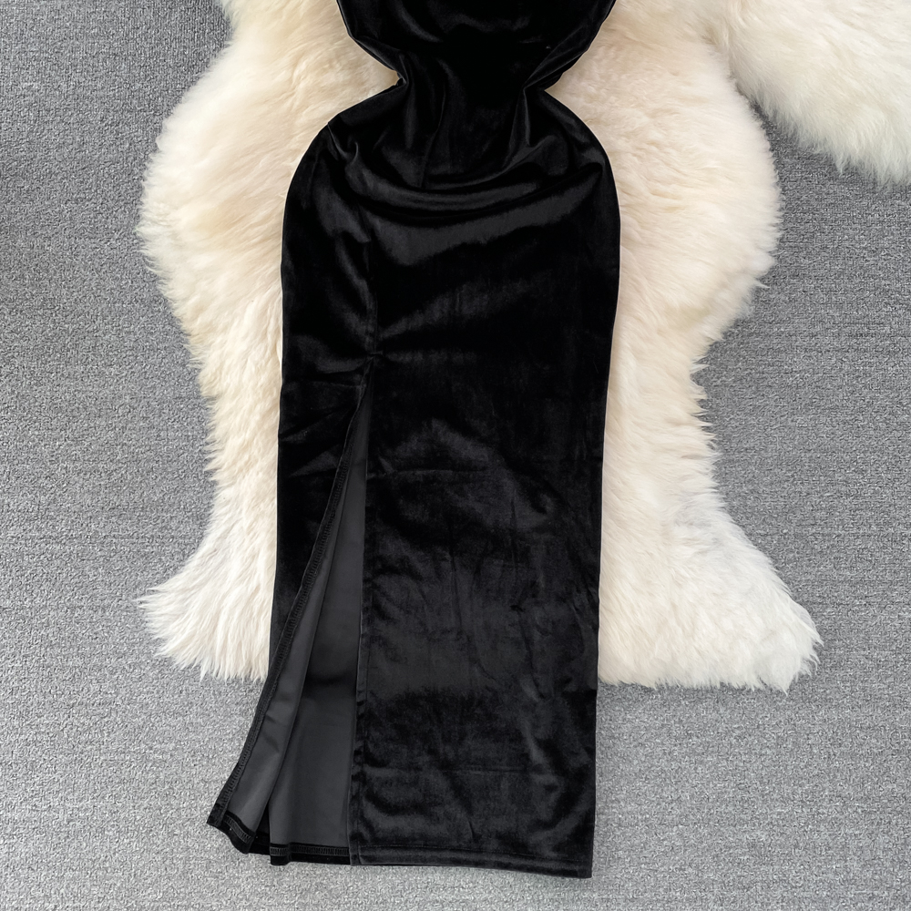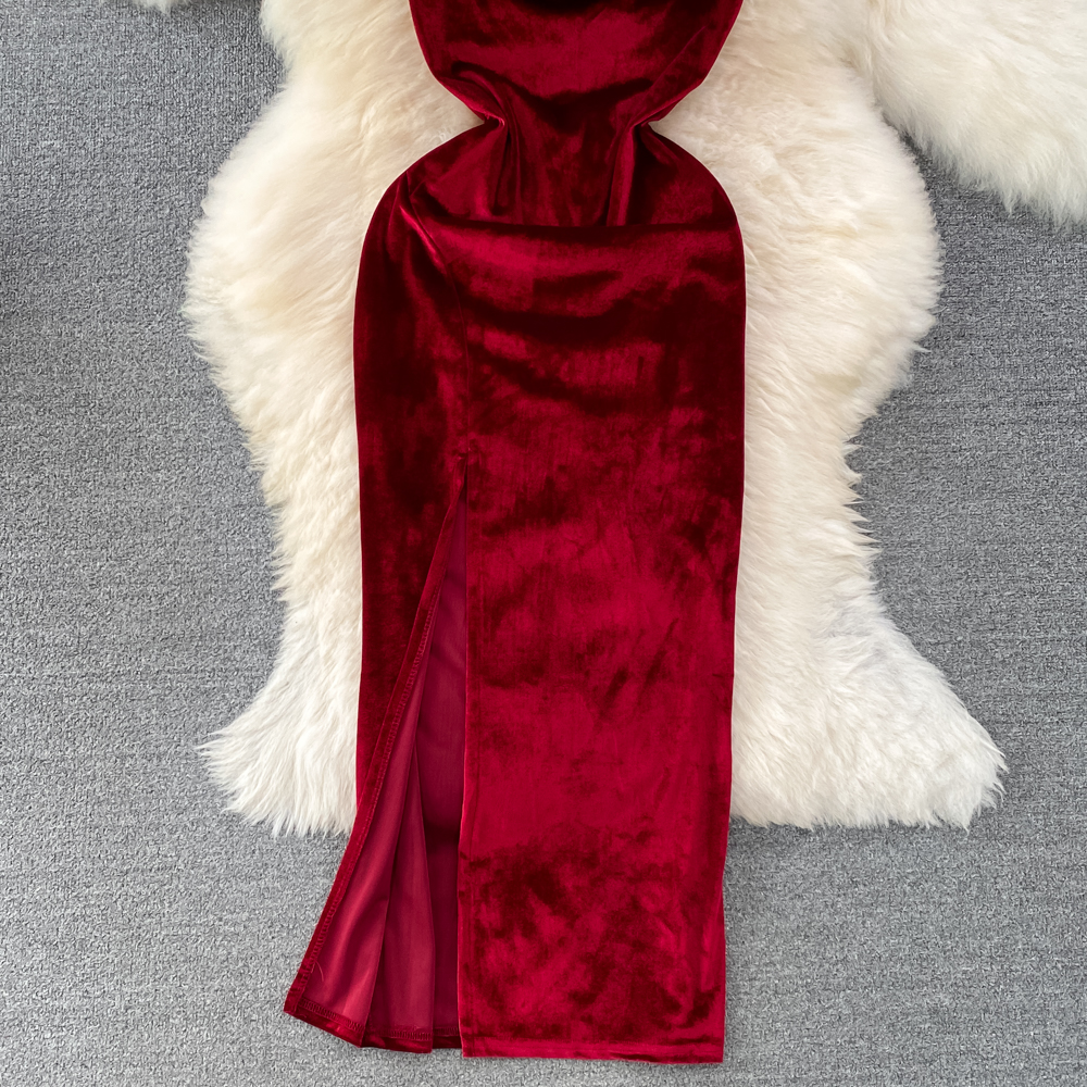 Elegant Hepburn-Inspired Velvet Swing Neck Cinched Waist and Midi Length Bodycon Dress