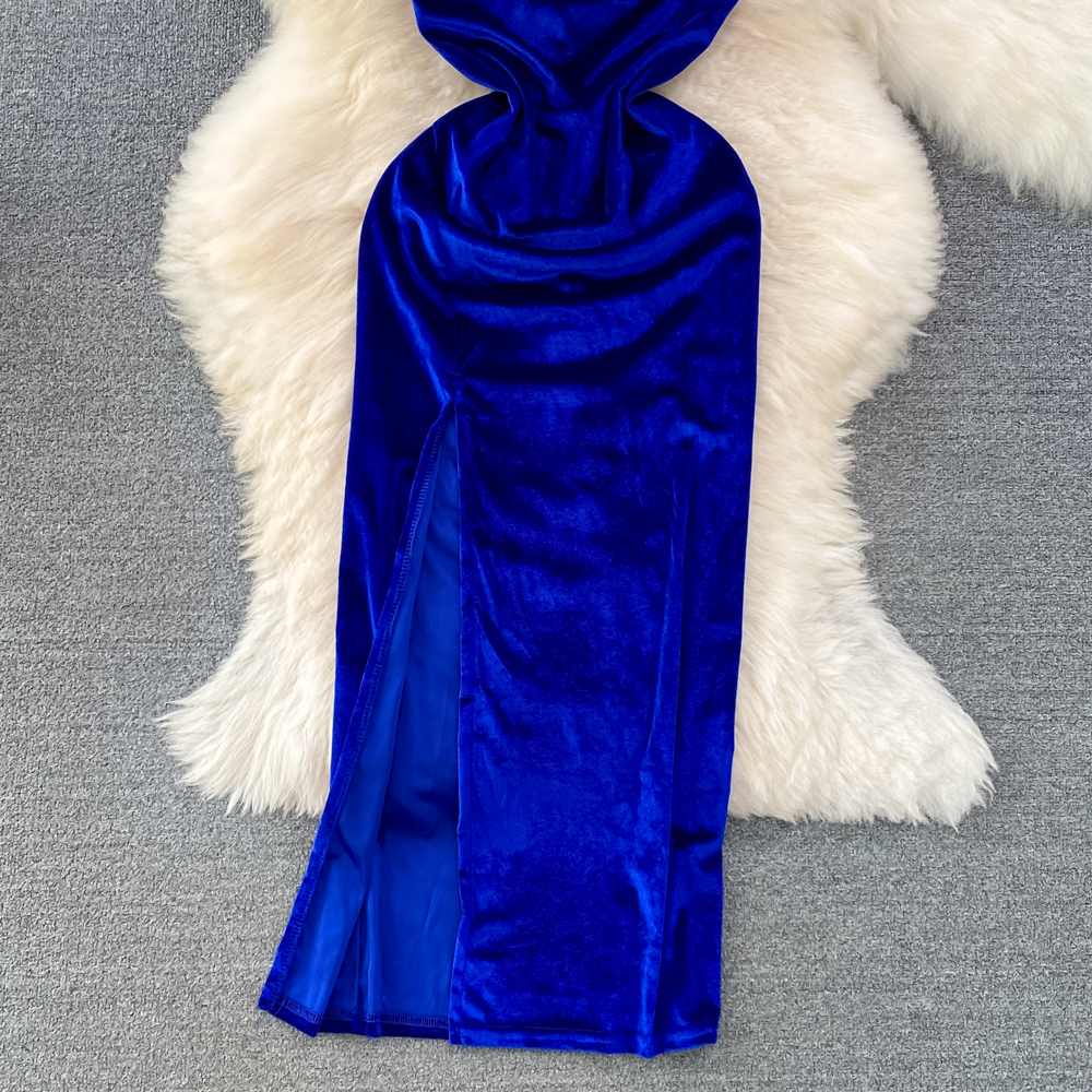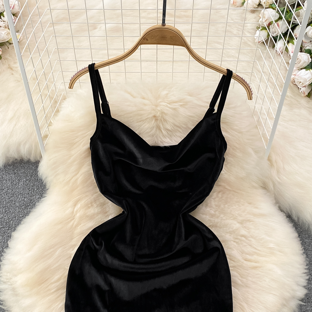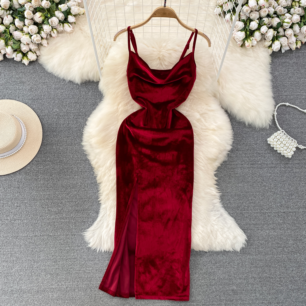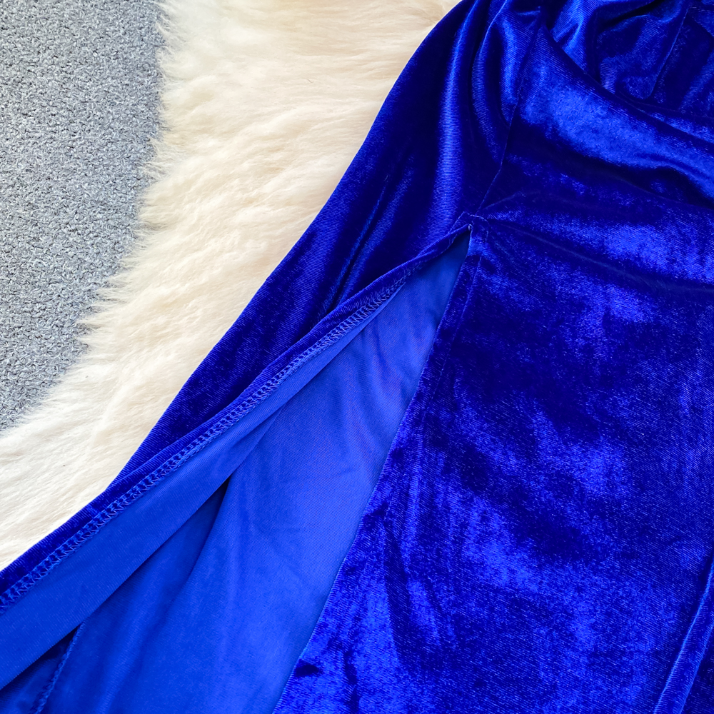 Elegant Hepburn-Inspired Velvet Swing Neck Cinched Waist and Midi Length Bodycon Dress