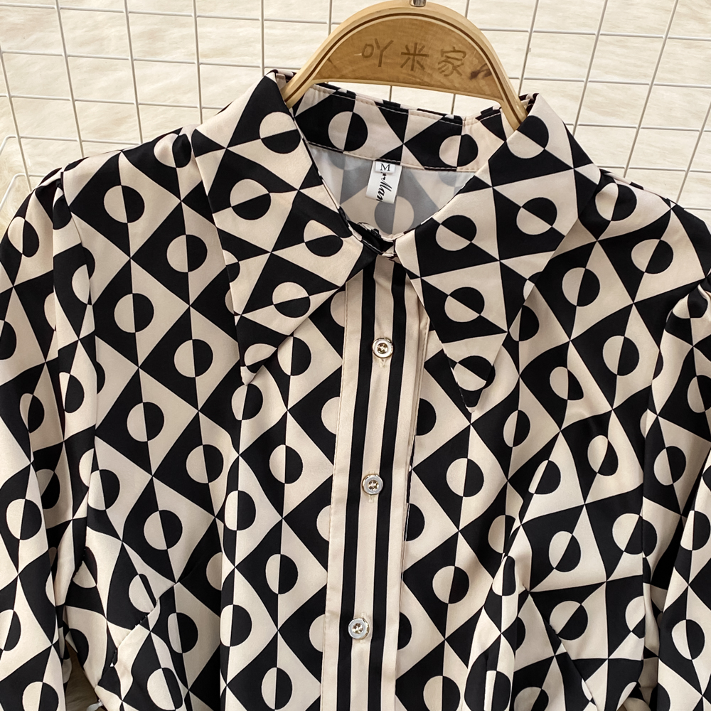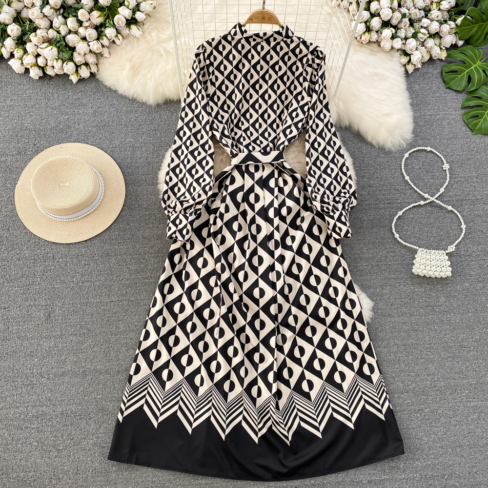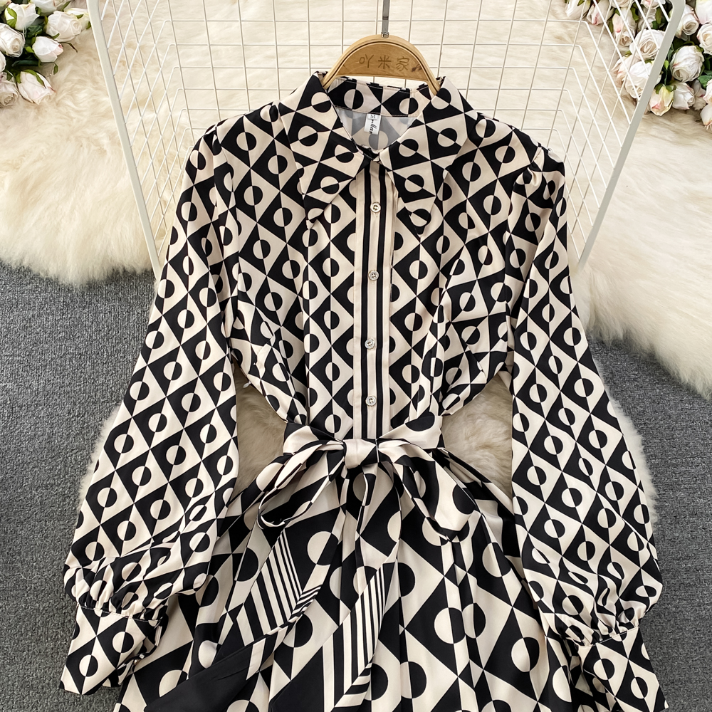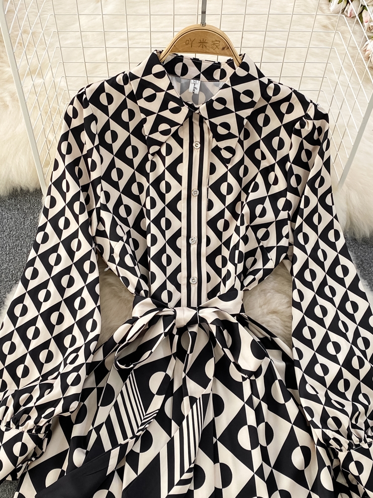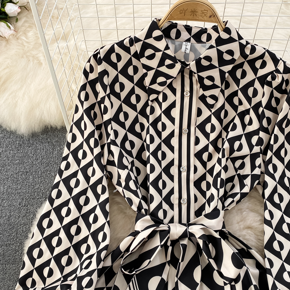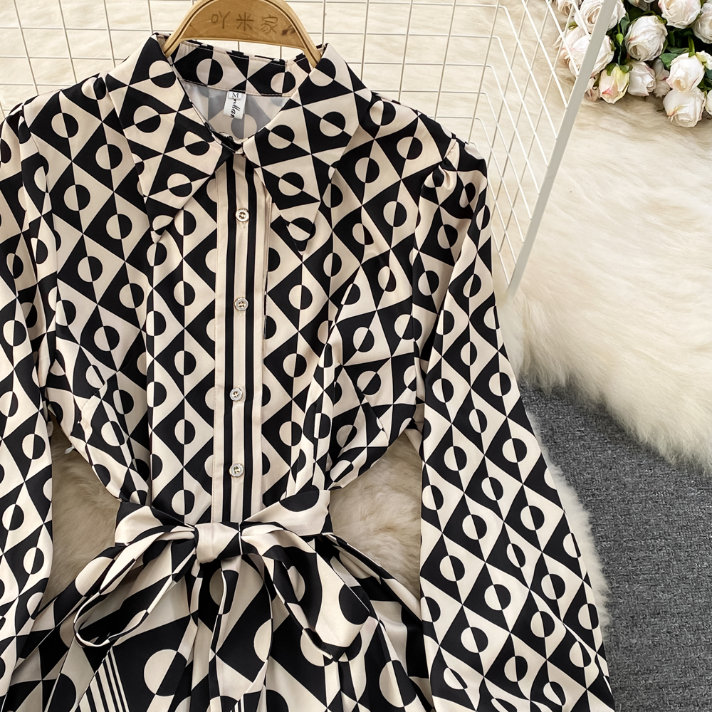 Elegant Retro Light Mature Style Shirt Dress with Cinched Waist and Long Sleeves