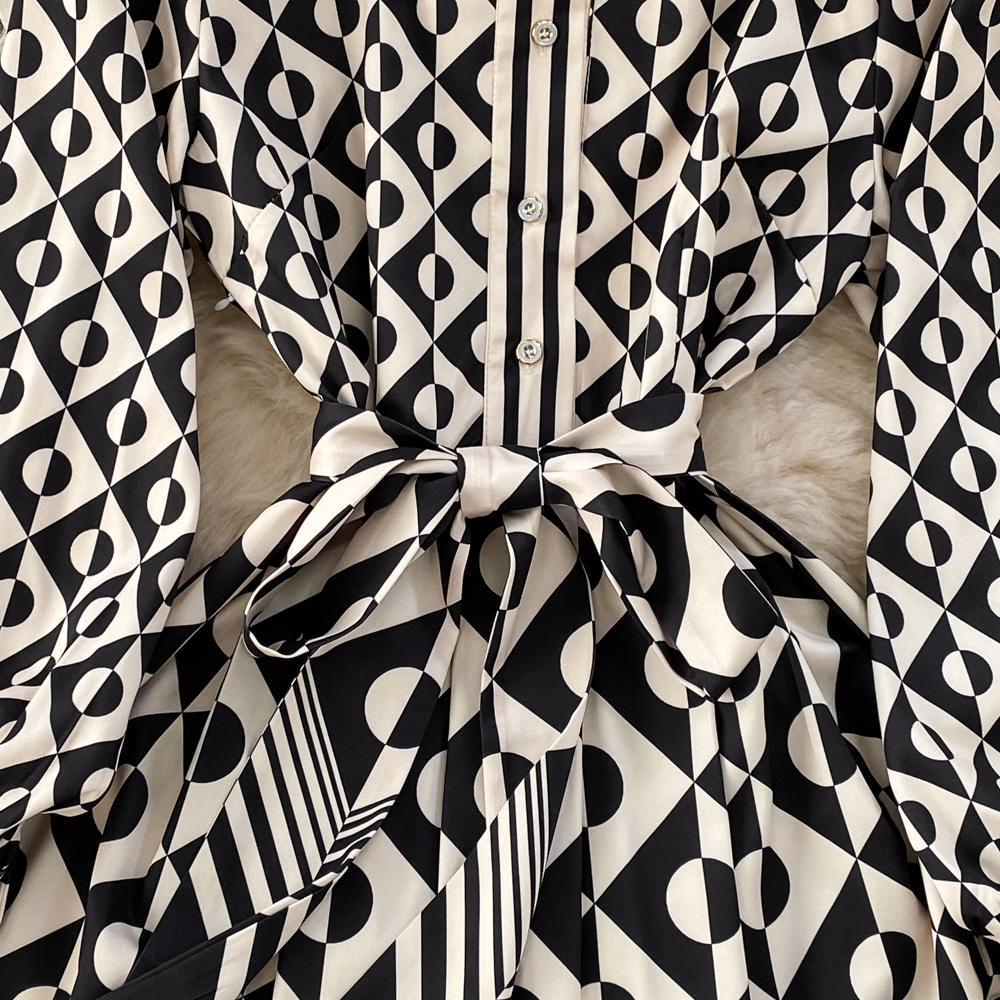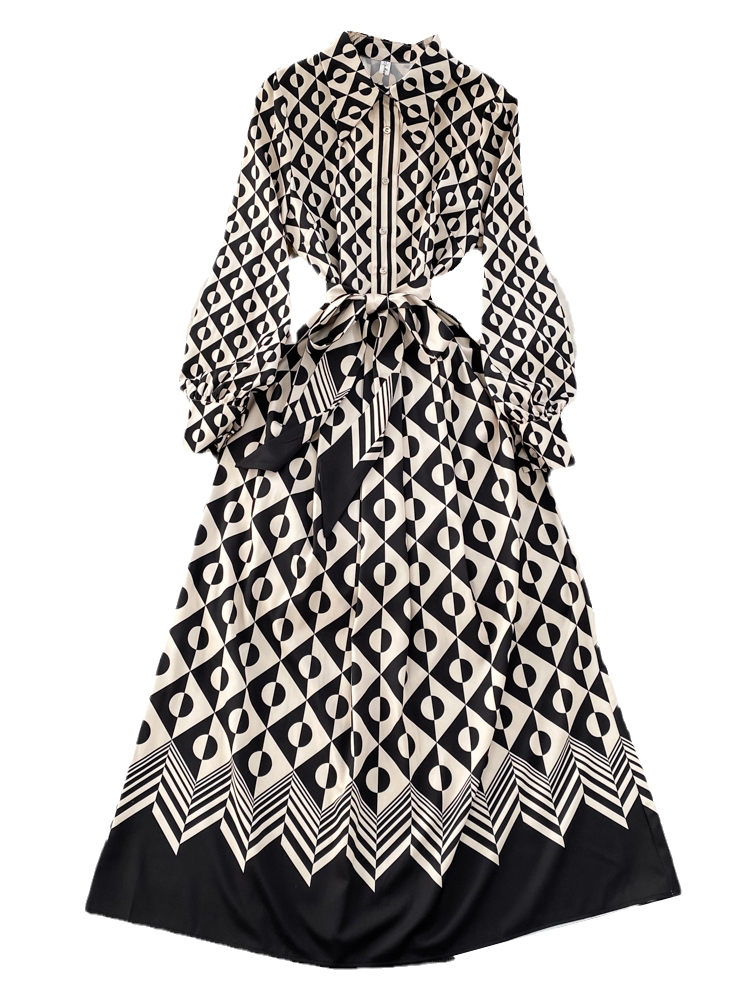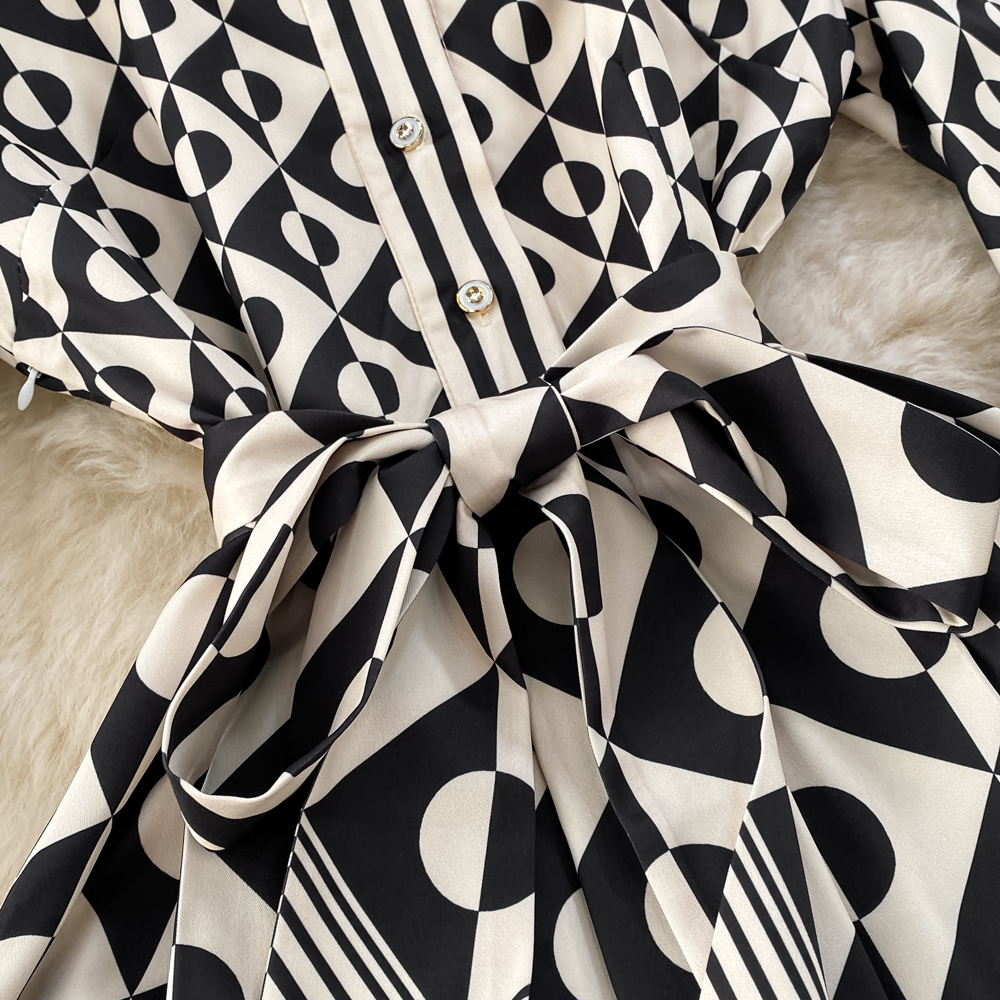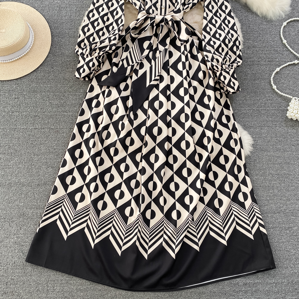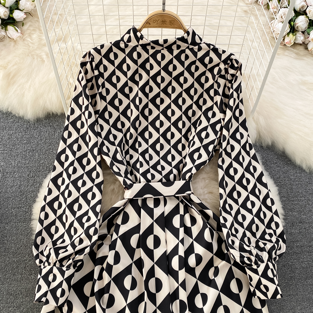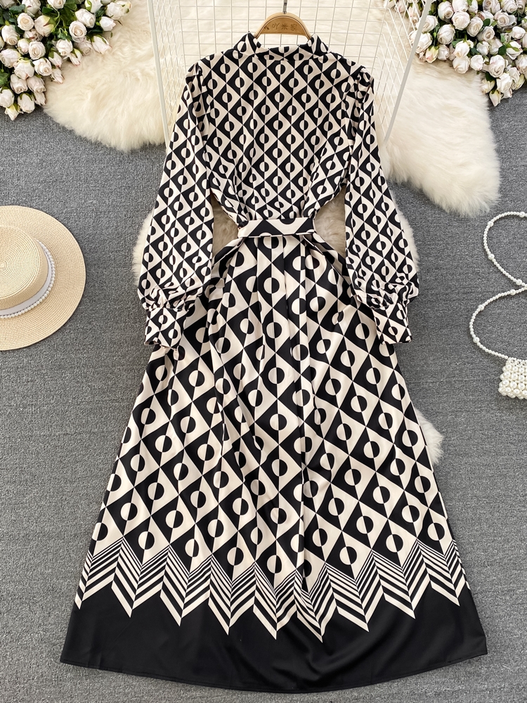 Elegant Retro Light Mature Style Shirt Dress with Cinched Waist and Long Sleeves