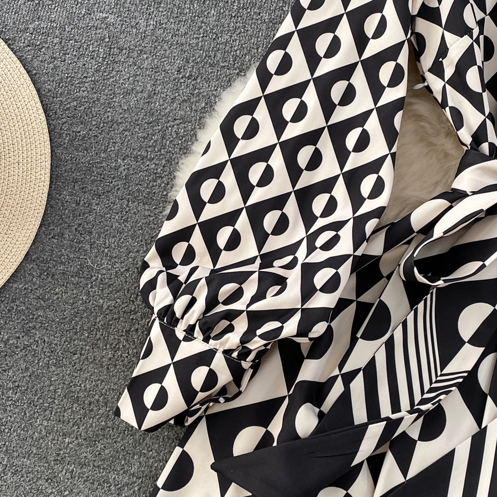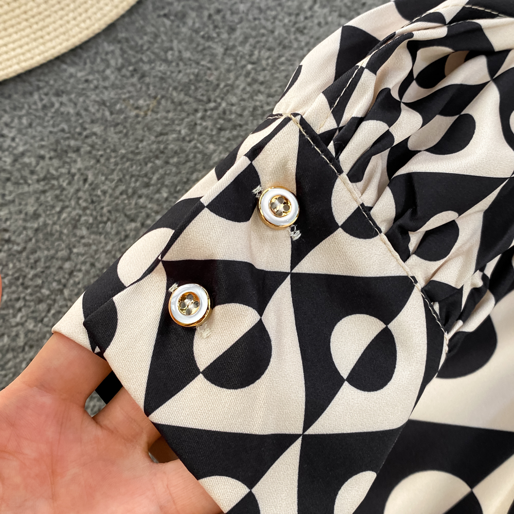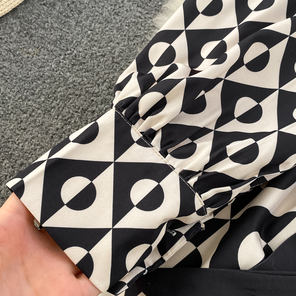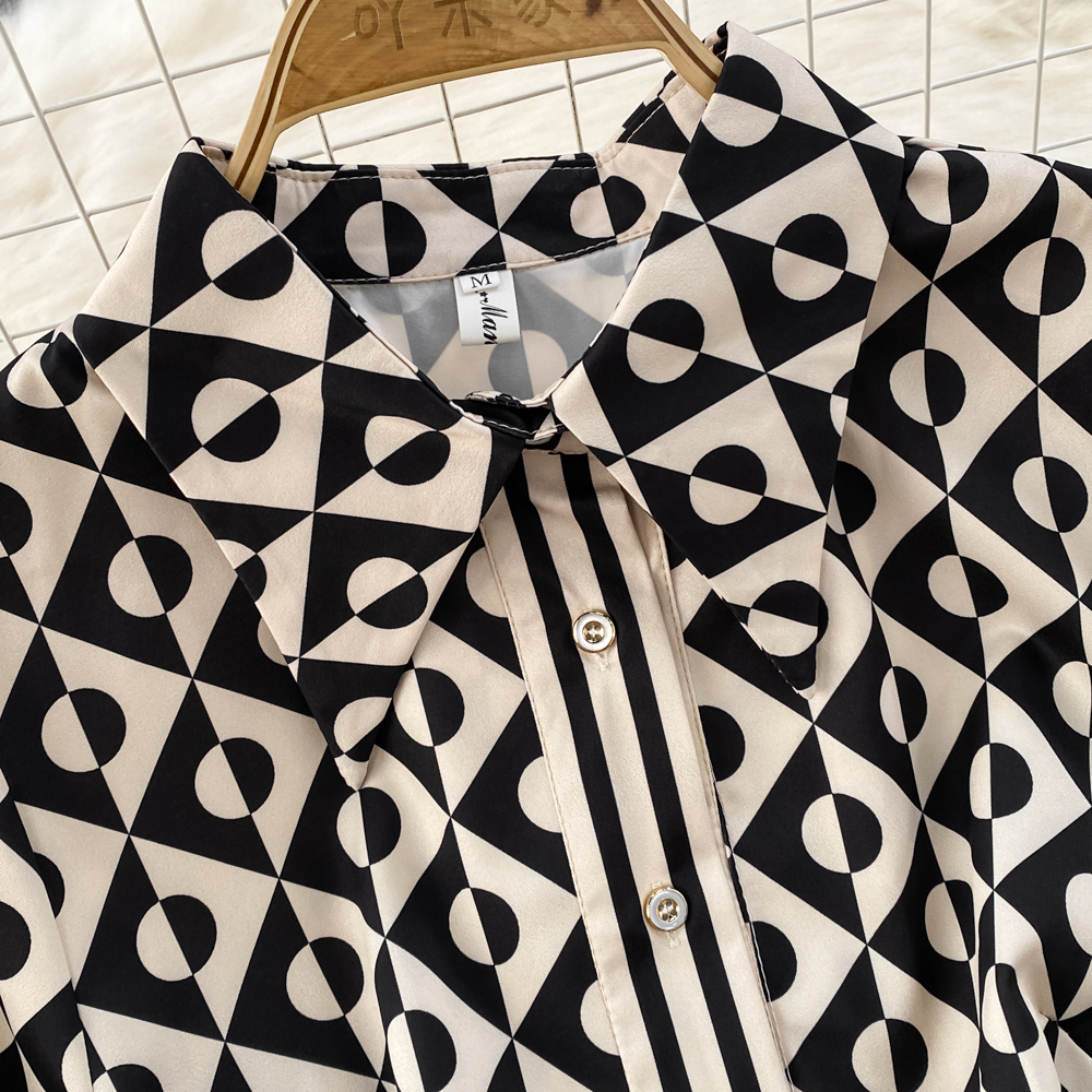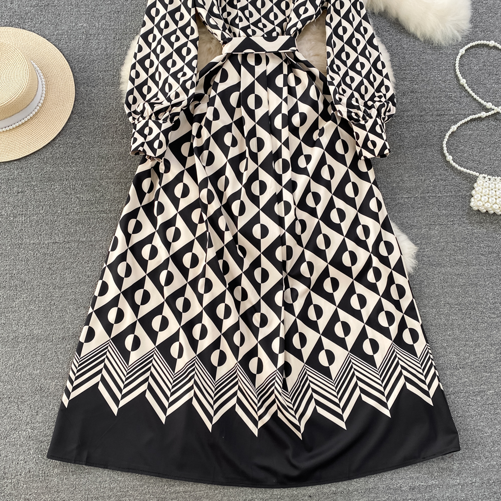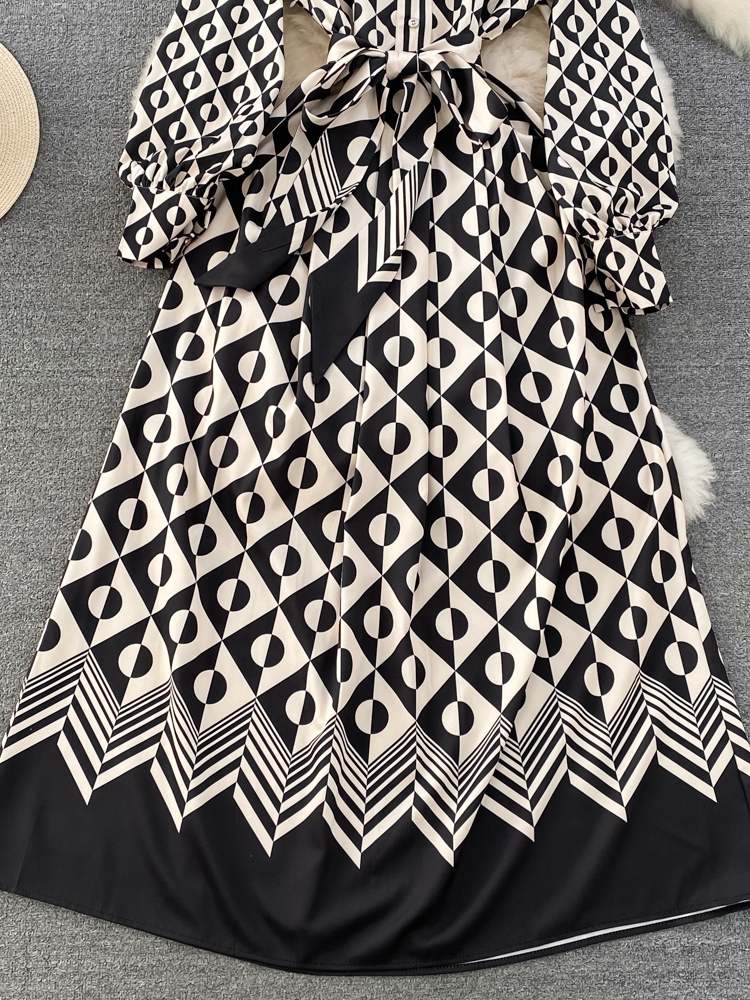 Elegant Retro Light Mature Style Shirt Dress with Cinched Waist and Long Sleeves