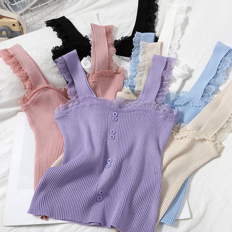 Elegant Sweet And Slim Suspenders Base knitted Lace Tops For Winter