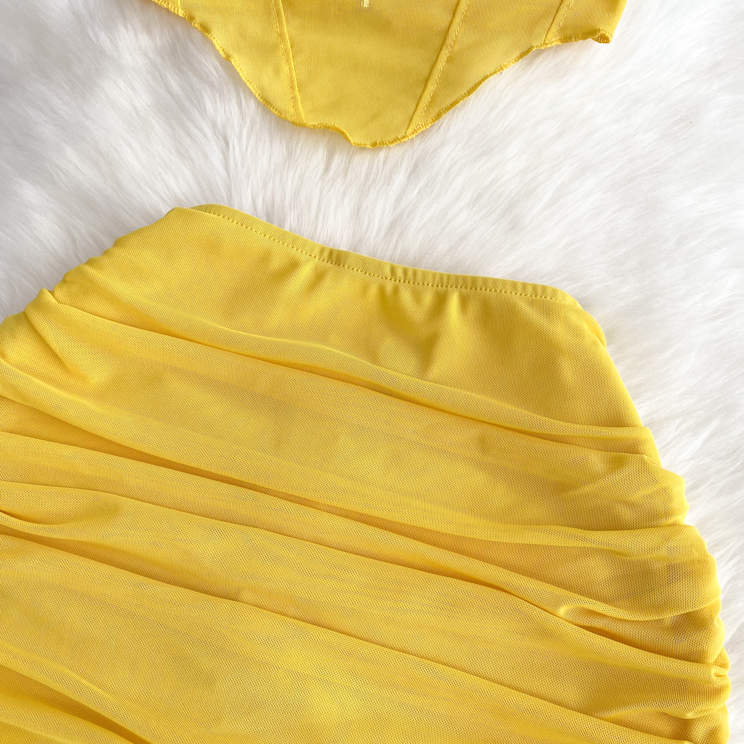 - Pattern: Bandeau Vest & High-waisted Skirt