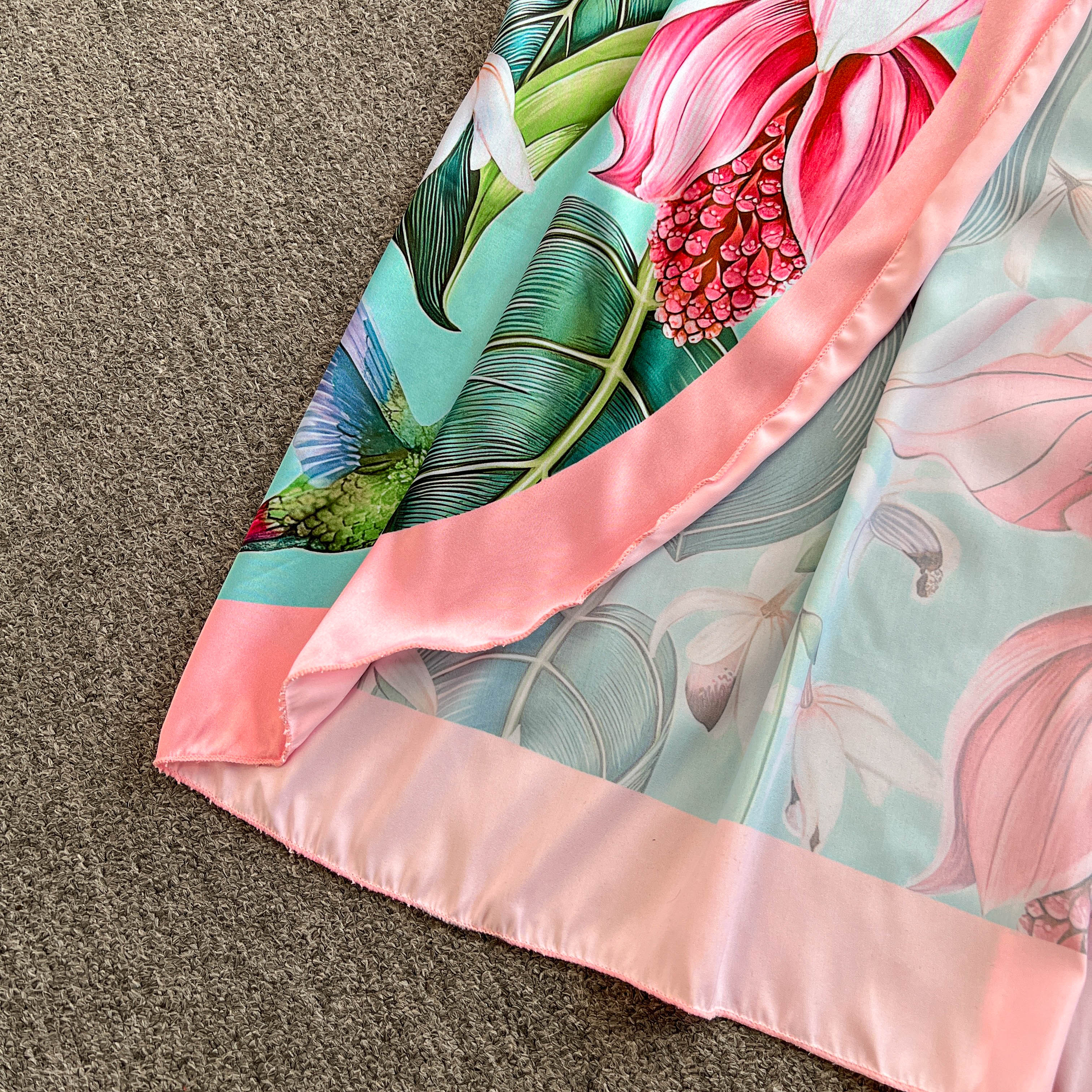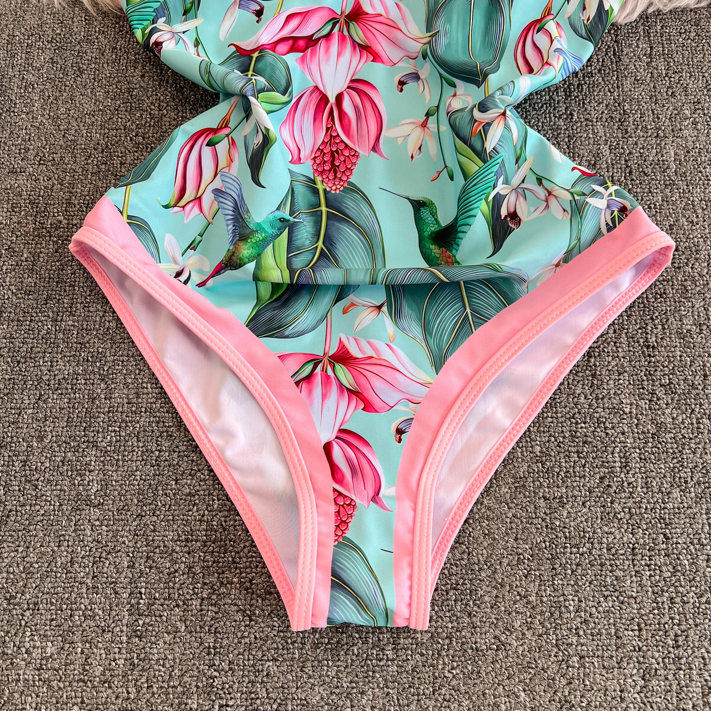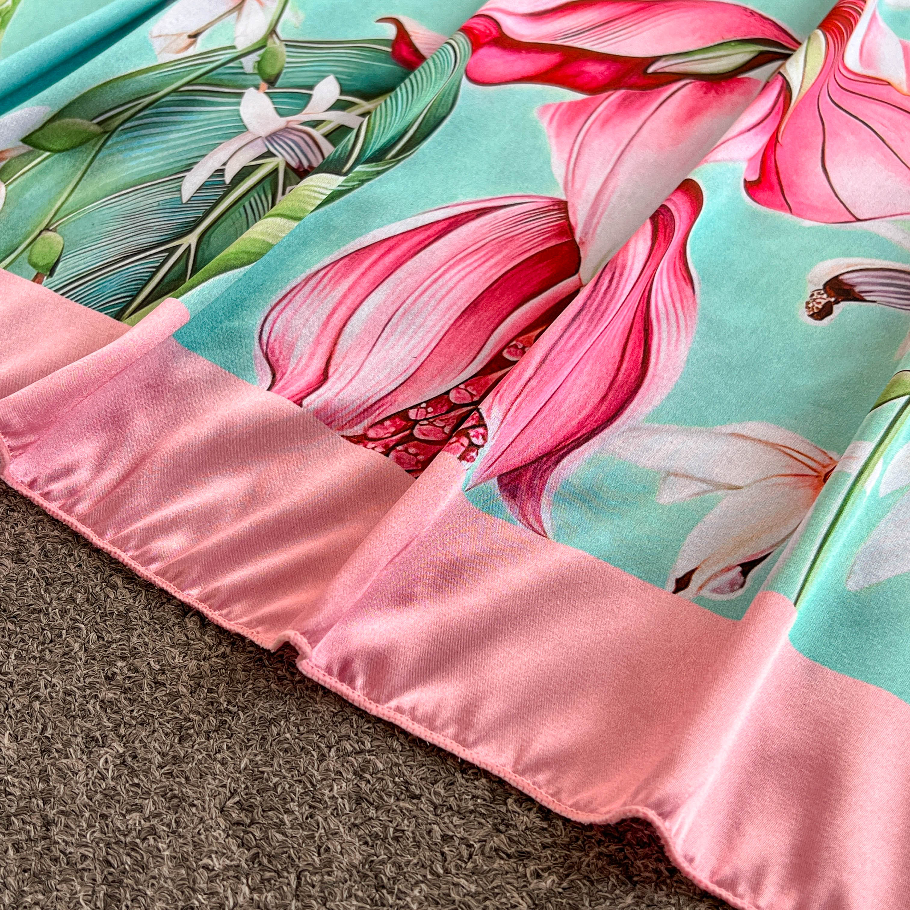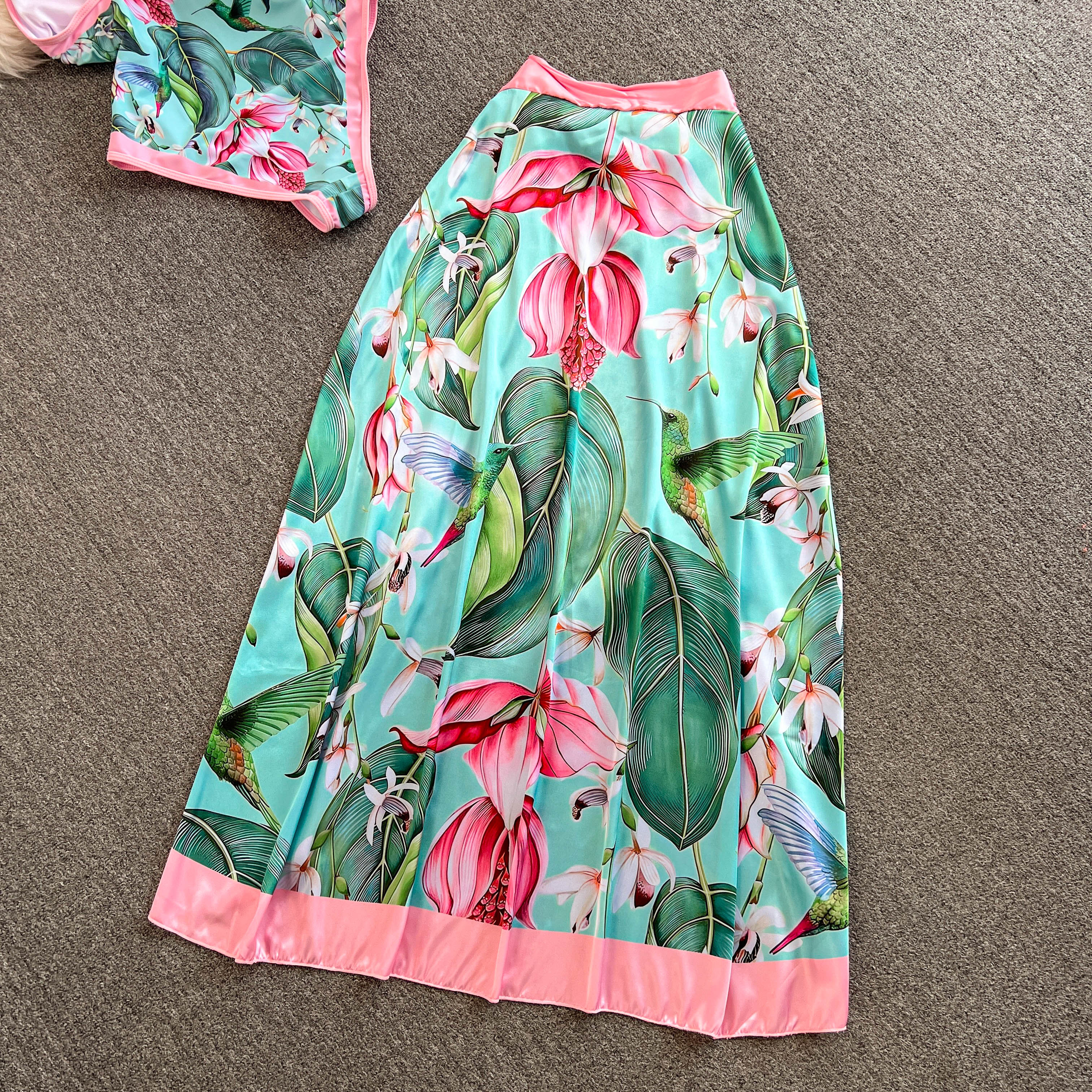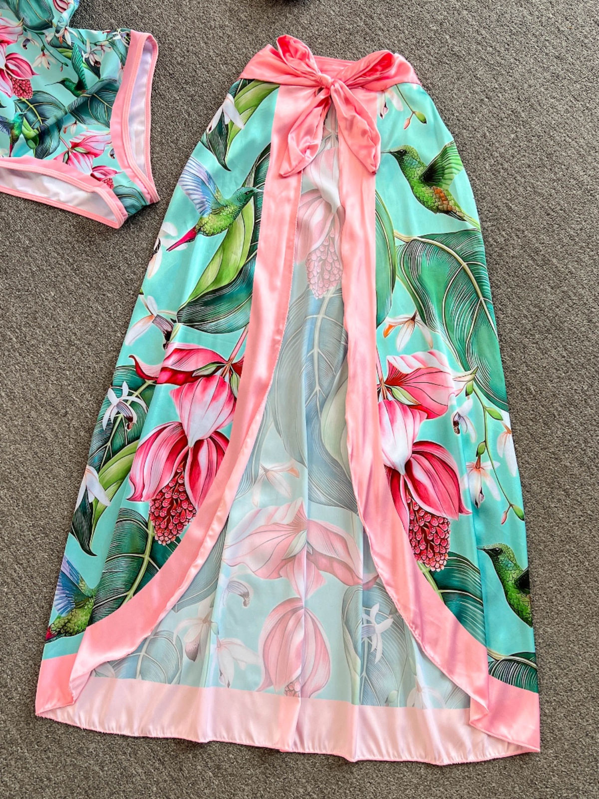 Exquisite Vacation One-Piece Suite with Contrasting Prints and Elegant Tie Skirt Set