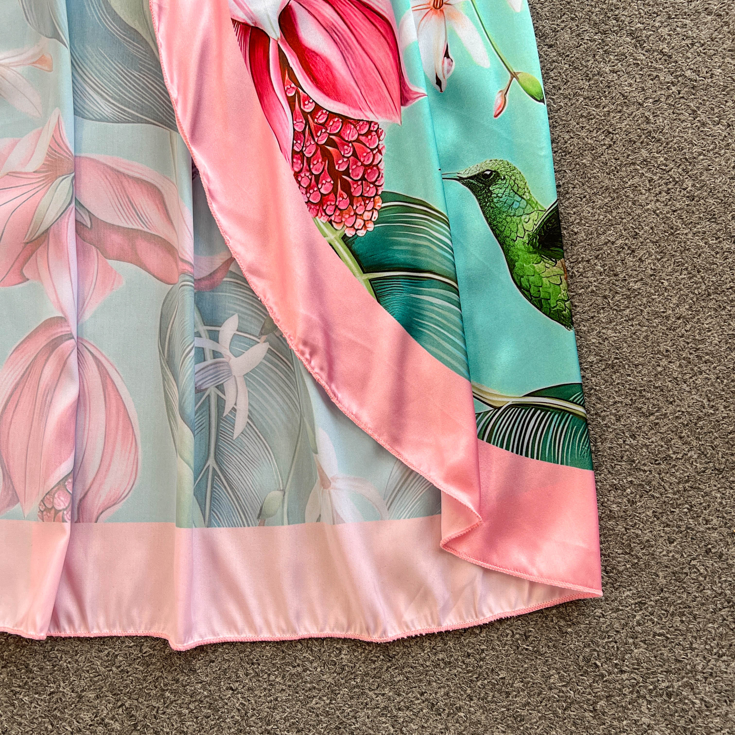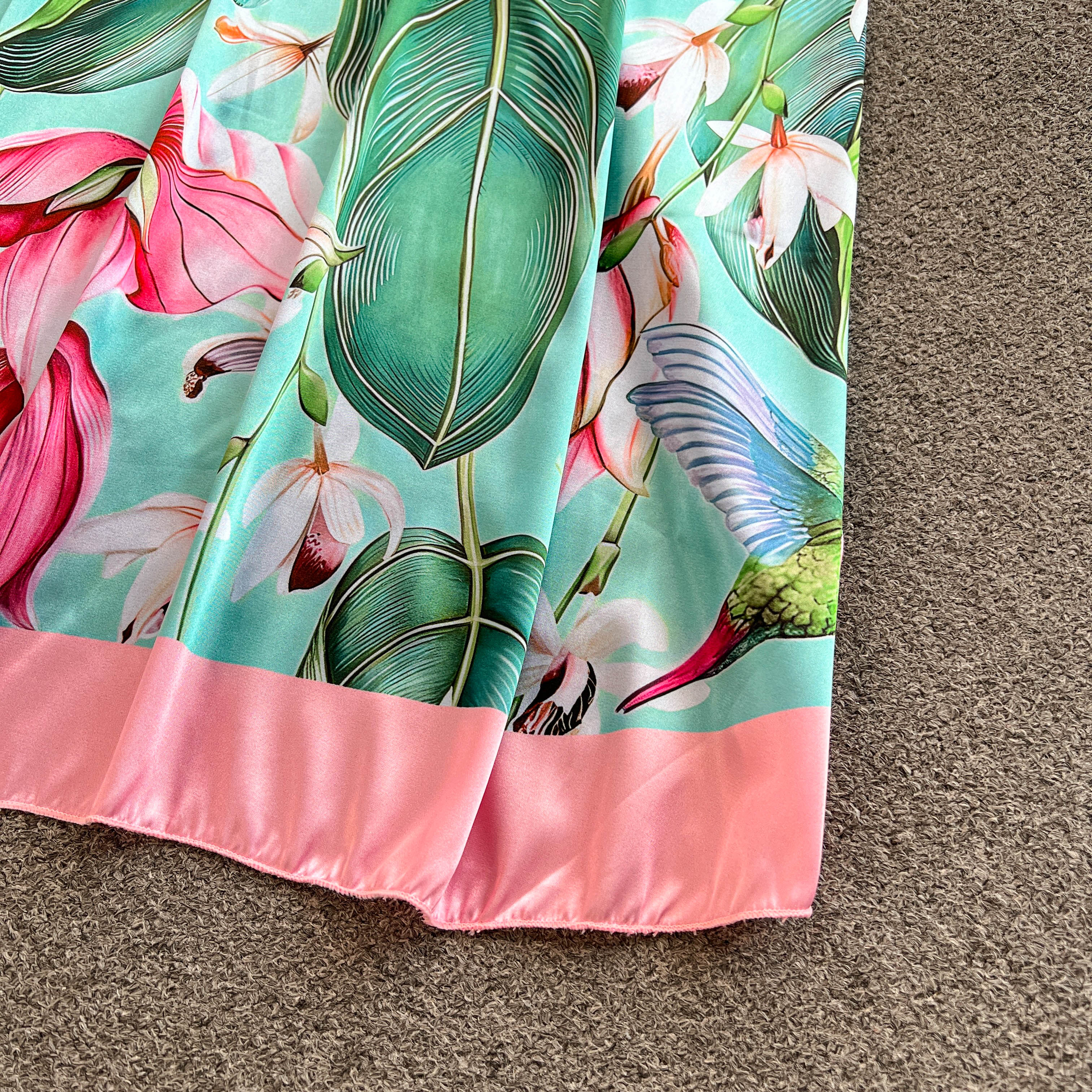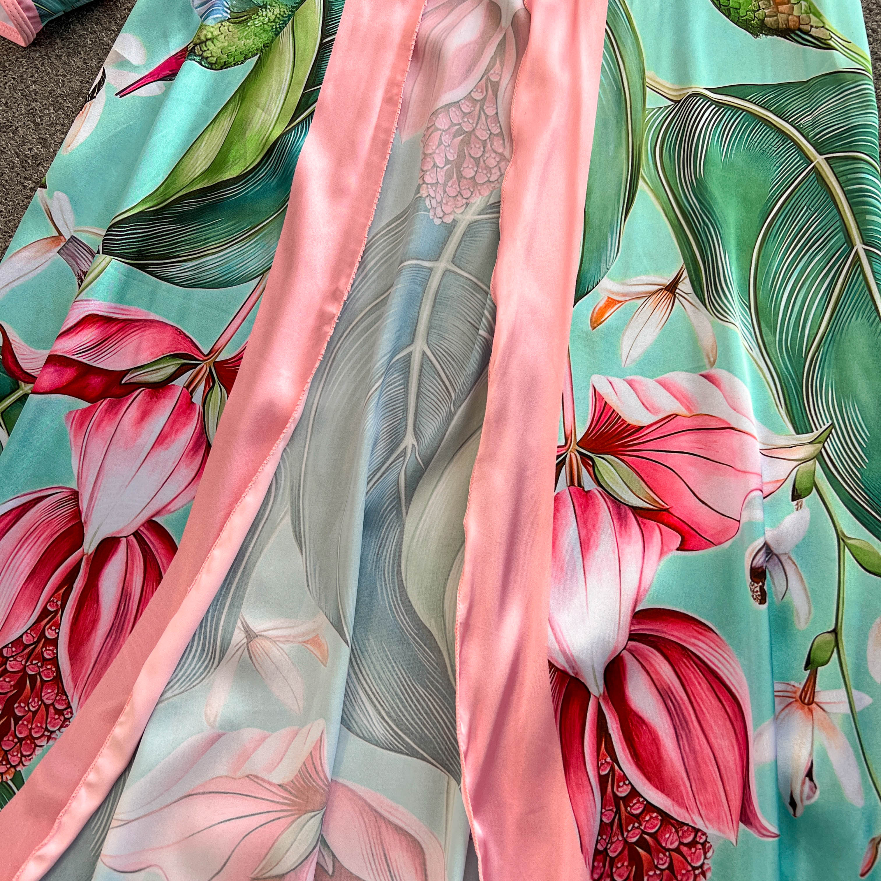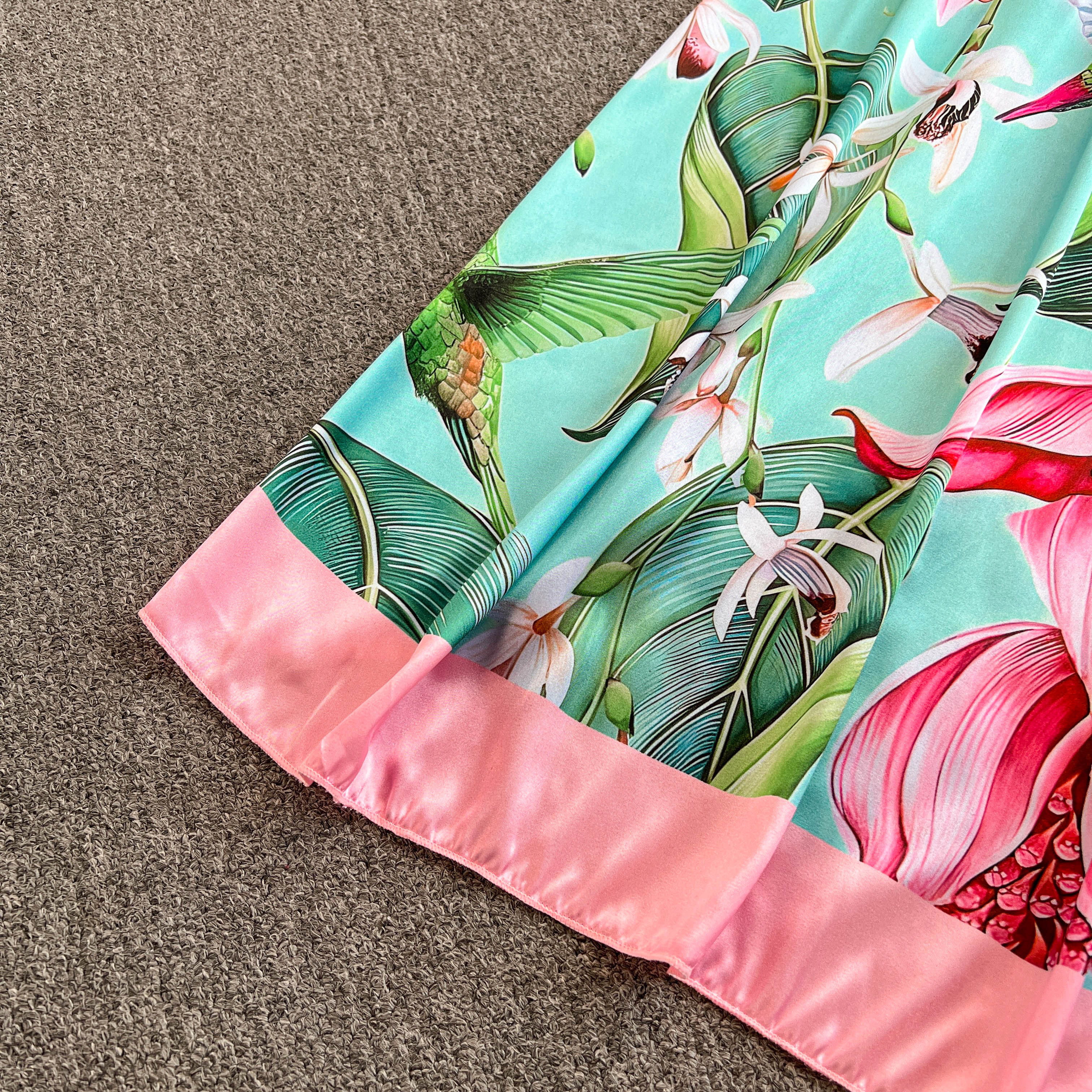 Exquisite Vacation One-Piece Suite with Contrasting Prints and Elegant Tie Skirt Set